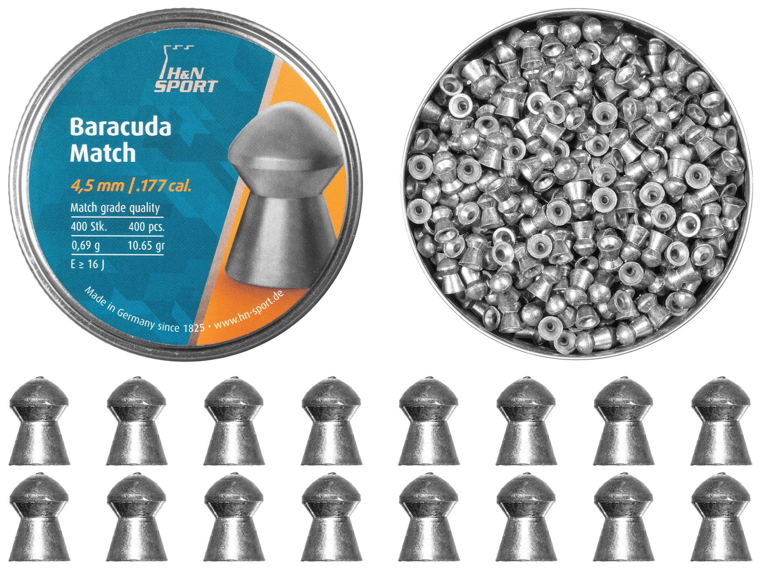 Śrut wykonywany jest z ołowiu wzbogacanego irydem, zwiększającym twardość wytrzymałość na odkształcenia wynikłe w trakcie transportu lub ładowania. Aerodynamiczna główka tworzy mały opór powietrza, przez co ma lepszą donośność i niższy opad na danym dystansie. Diabolo H&N Baracuda Match 4,52 mm 400 szt. jest przeznaczony do konkurencji strzeleckich, w których kluczową rolę ogrywa precyzja i powtarzalność strzałów np. Field&Target Shooting.