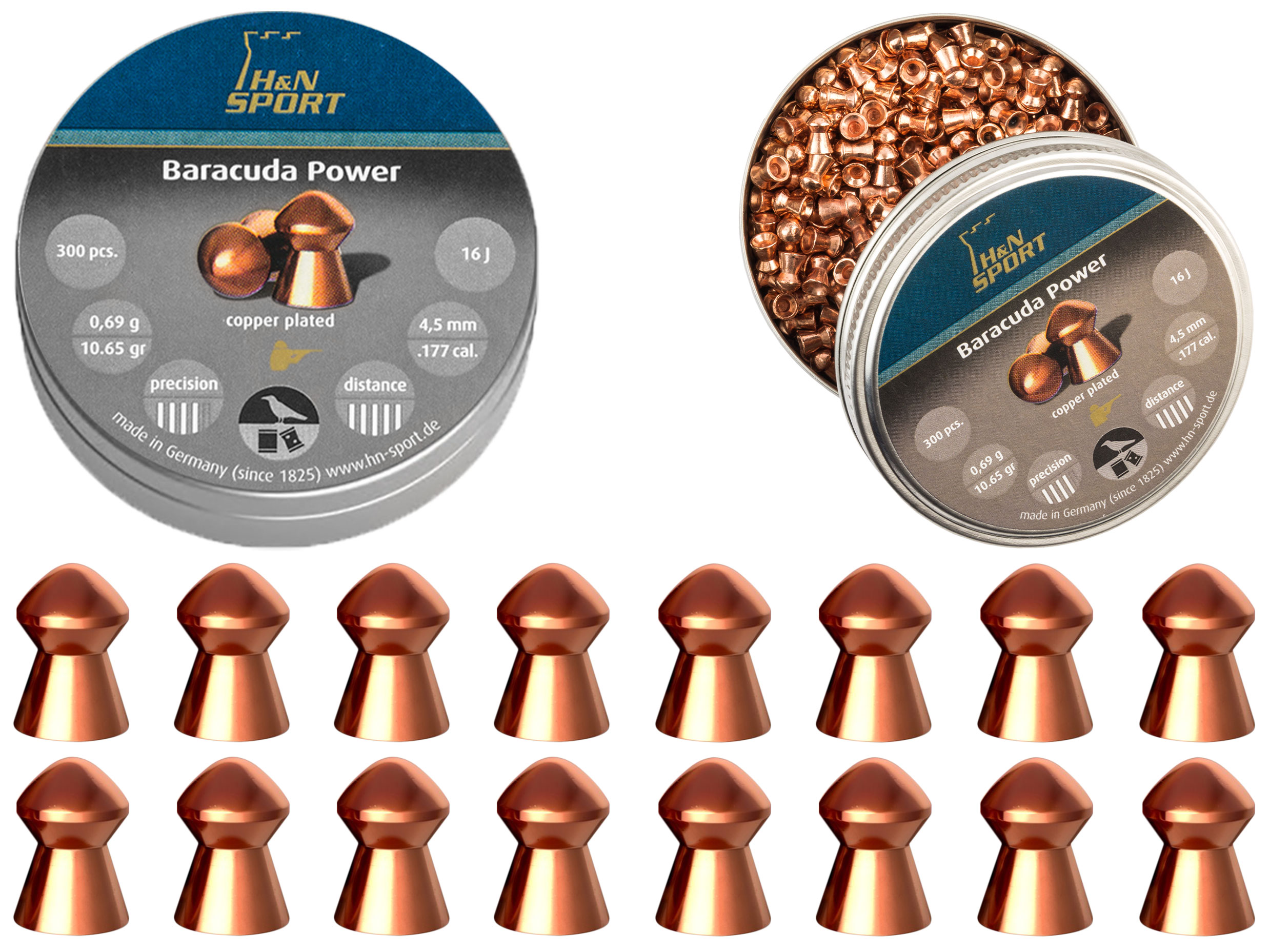 Baracuda Power to ciężki, precyzyjny śrut przeznaczony do strzelania na dalekie dystanse. Twarda miedziowa powłoka zwiększa przebijaność nawet o 20% w porównianiu do całkowicie ołowianych śrutów. Polecany do mocnych wiatrówek.