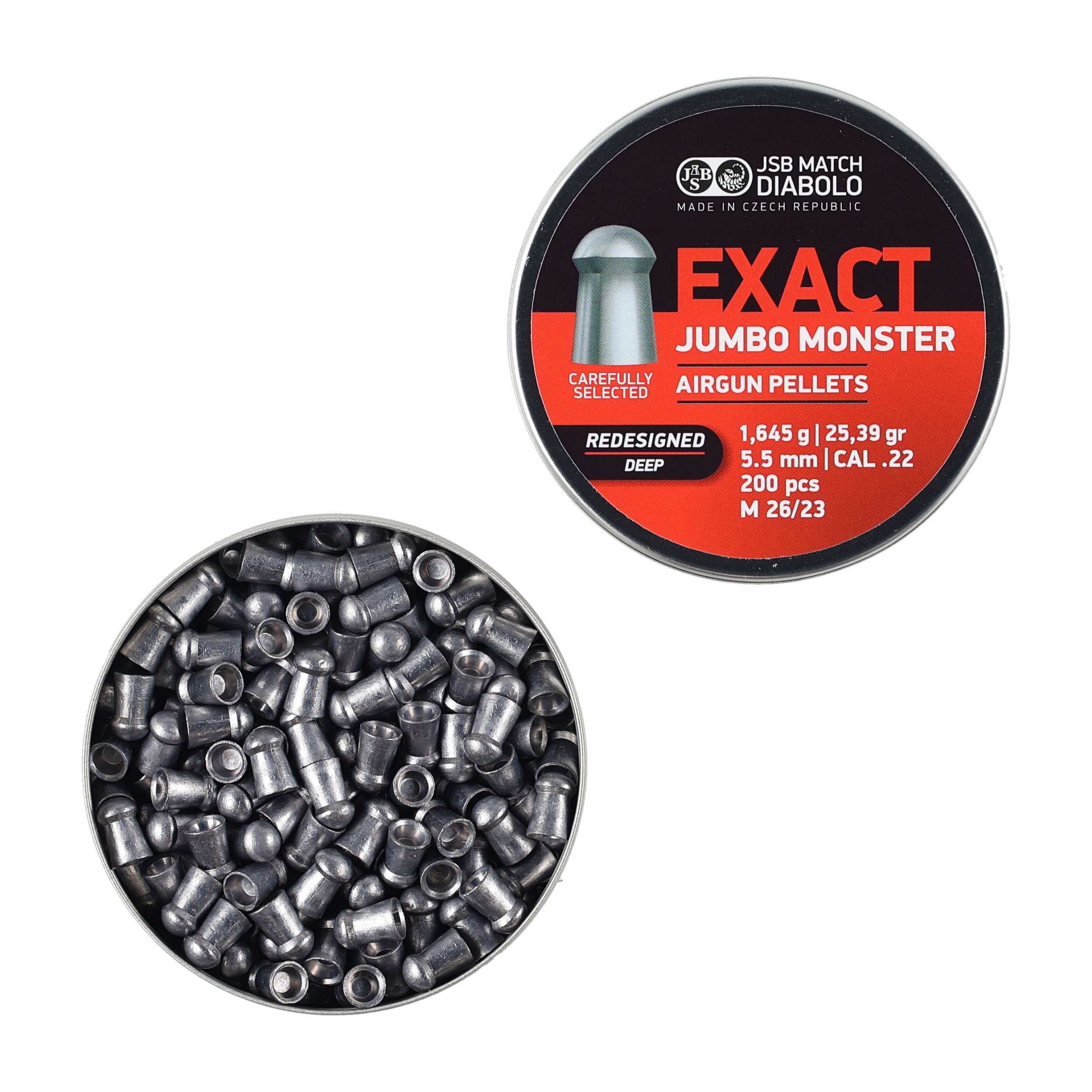 Jak każdy wyrób czeskiej marki JSB, śrut JSB Exact Jumbo Monster Redesigned Deep został wyprodukowany z ogromną precyzją, co gwarantuje wysoką celność i powtarzalność strzałów. Gładka półokrągła główka, wydłużony korpus oraz duży ciężar, powodują, że po wystrzeleniu śrut osiąga dużą prędkość wylotową, ma stosunkowo niski opór aerodynamiczny i minimalną podatność na boczne podmuchy wiatru.