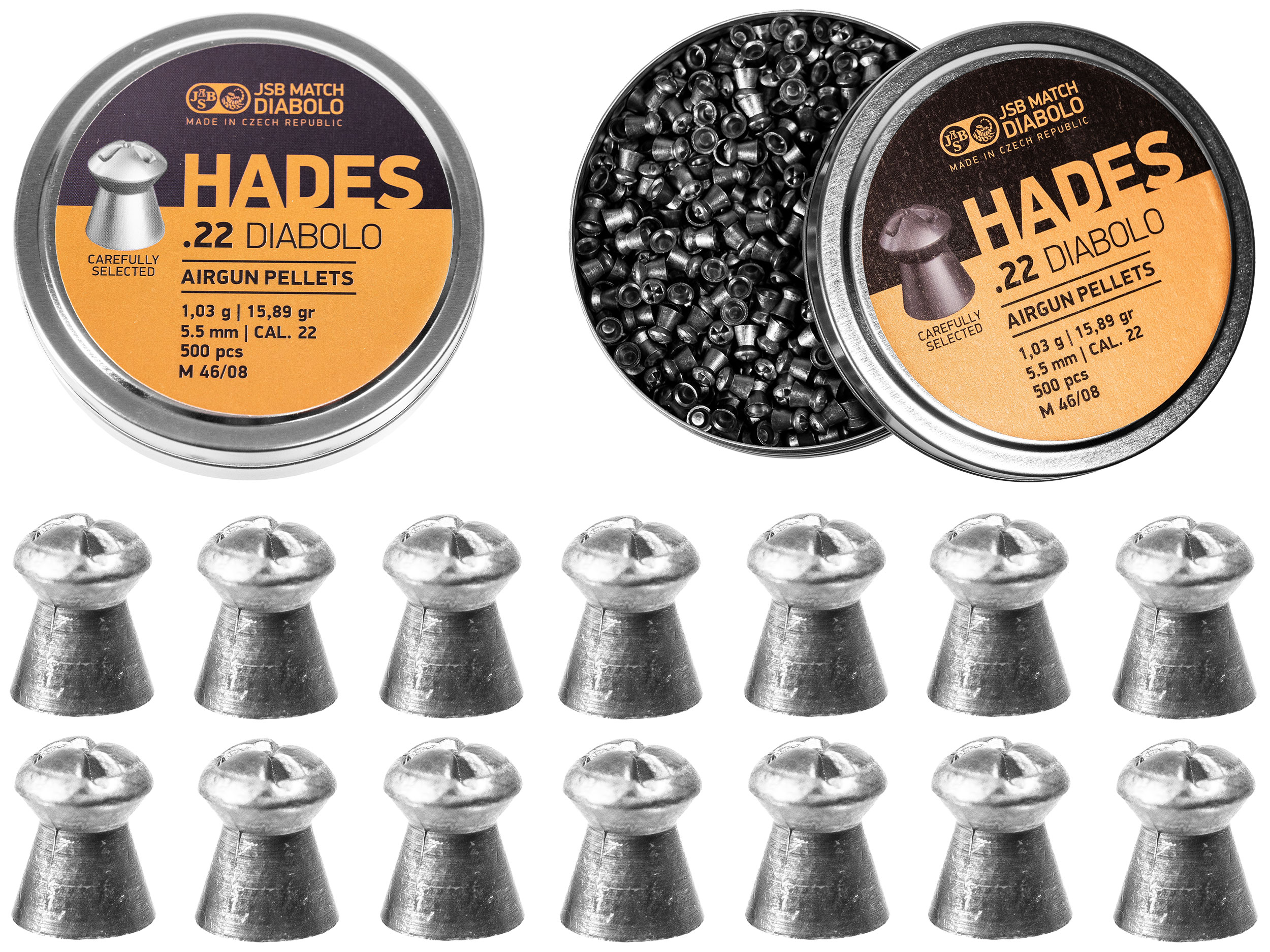 JSB Hades ma zmodyfikowaną główkę z głębokimi nacięciami, które powodują, że po trafieniu, śrucina ulega pełnemu rozpłaszczeniu, oddając w ten sposób pełną energię w cel.