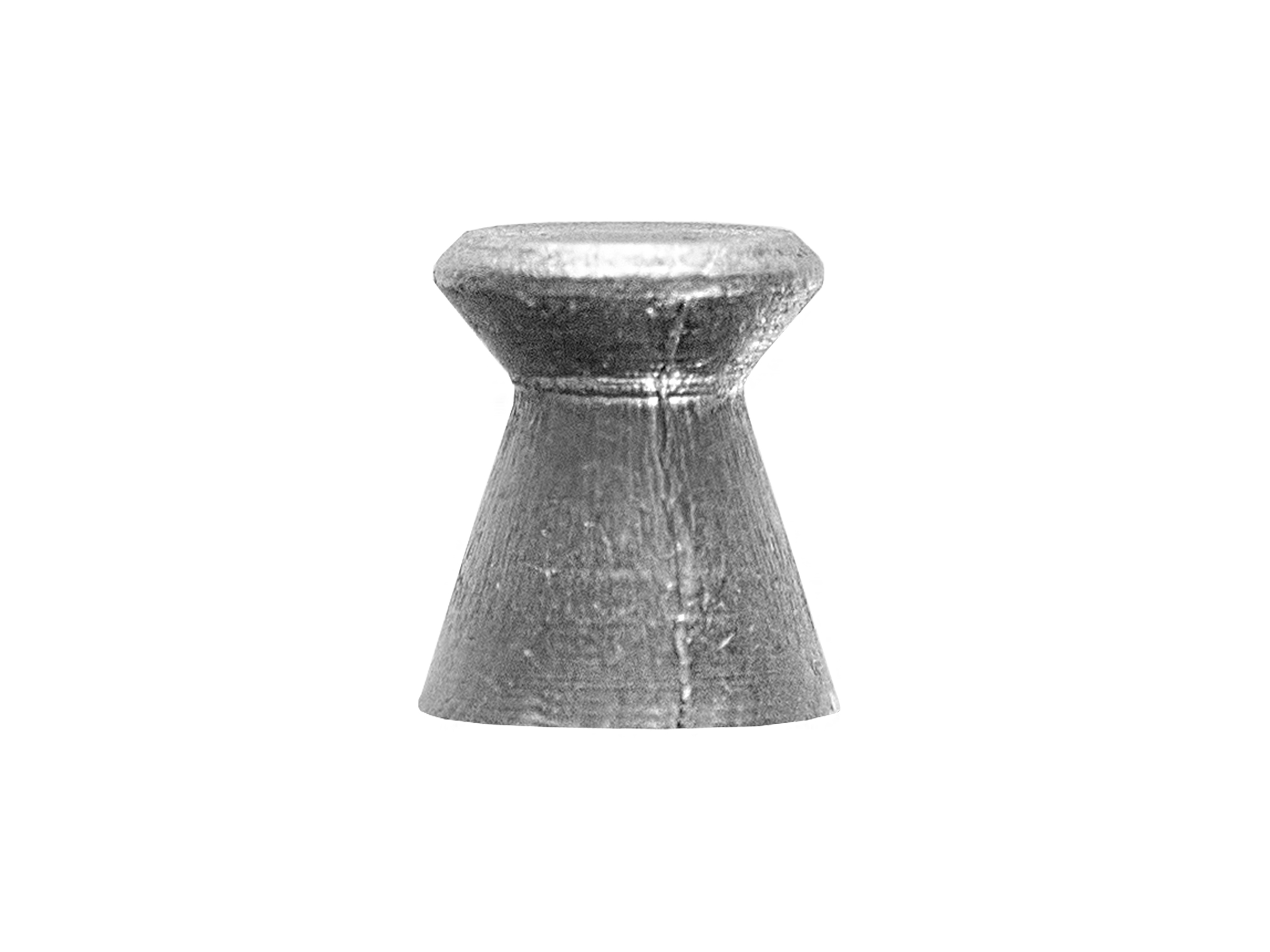 Płaska główka śruciny (Match) wycina okrągłe otwory w tarczy, śrut charakteryzuje się stabilną trajektorią lotu.