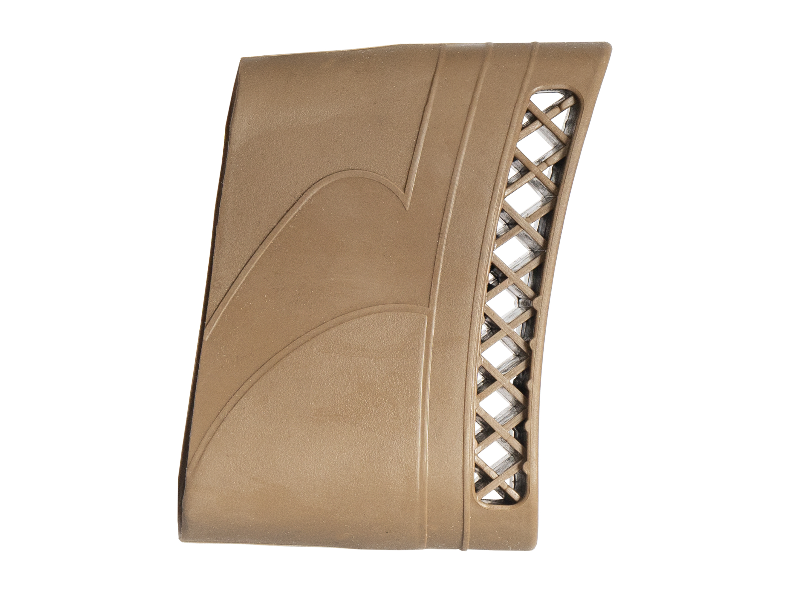 Nakładkę amortyzującą wykonano z gumy kauczukowej, cechującej się dużą elastycznością i odpornością na uszkodzenia mechaniczne. Montaż jest prosty i szybki, ponieważ nakładkę po prostu nasuwany na kolbę broni.