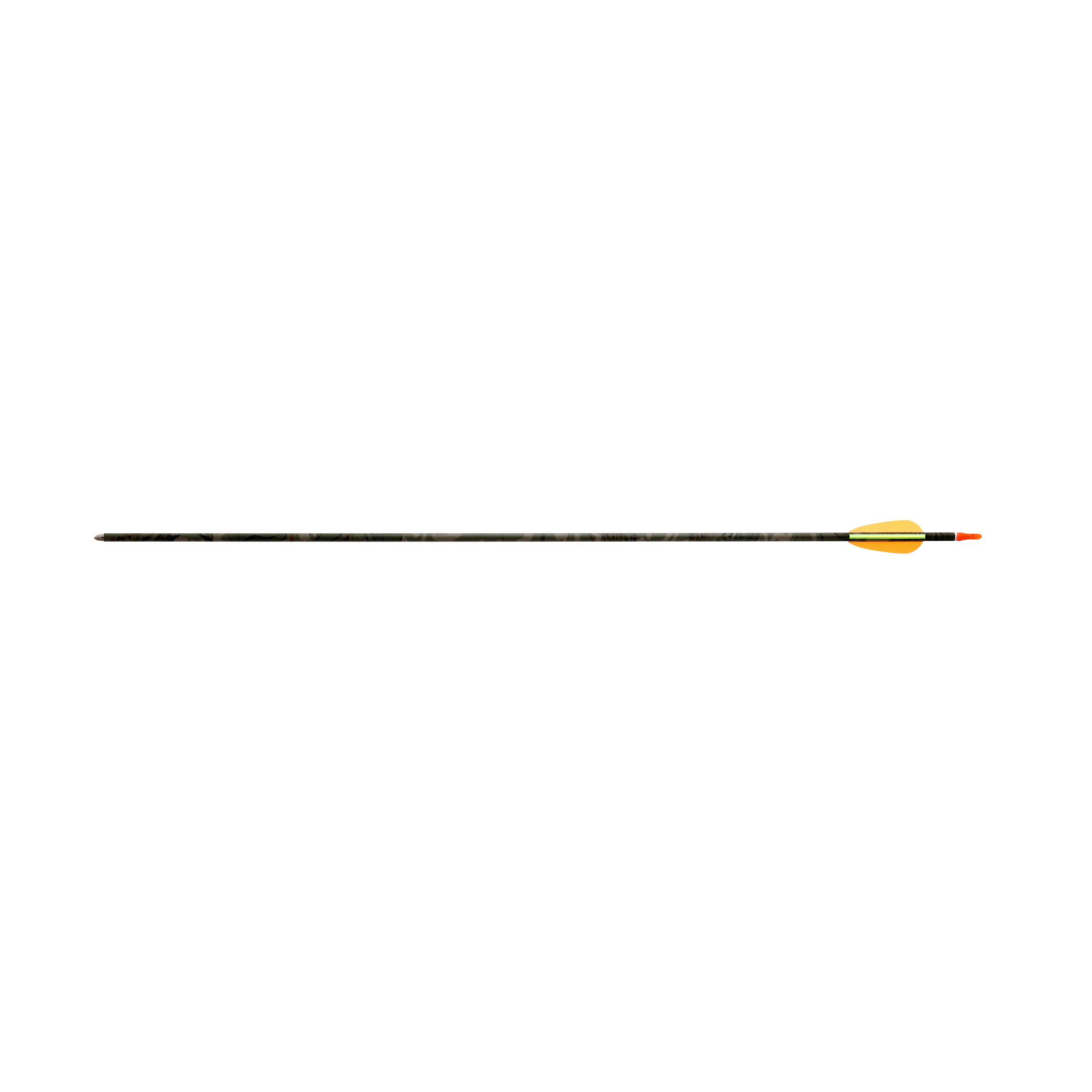 Strzała aluminiowa tarczowa o długości 29 cali w kamuflażu. Strzała wykonana z aluminium posiada gładki tarczowy grot, lotki z gumoplastiku oraz plastikową nasadkę stabilnie osadzającą strzałę na cięciwie.