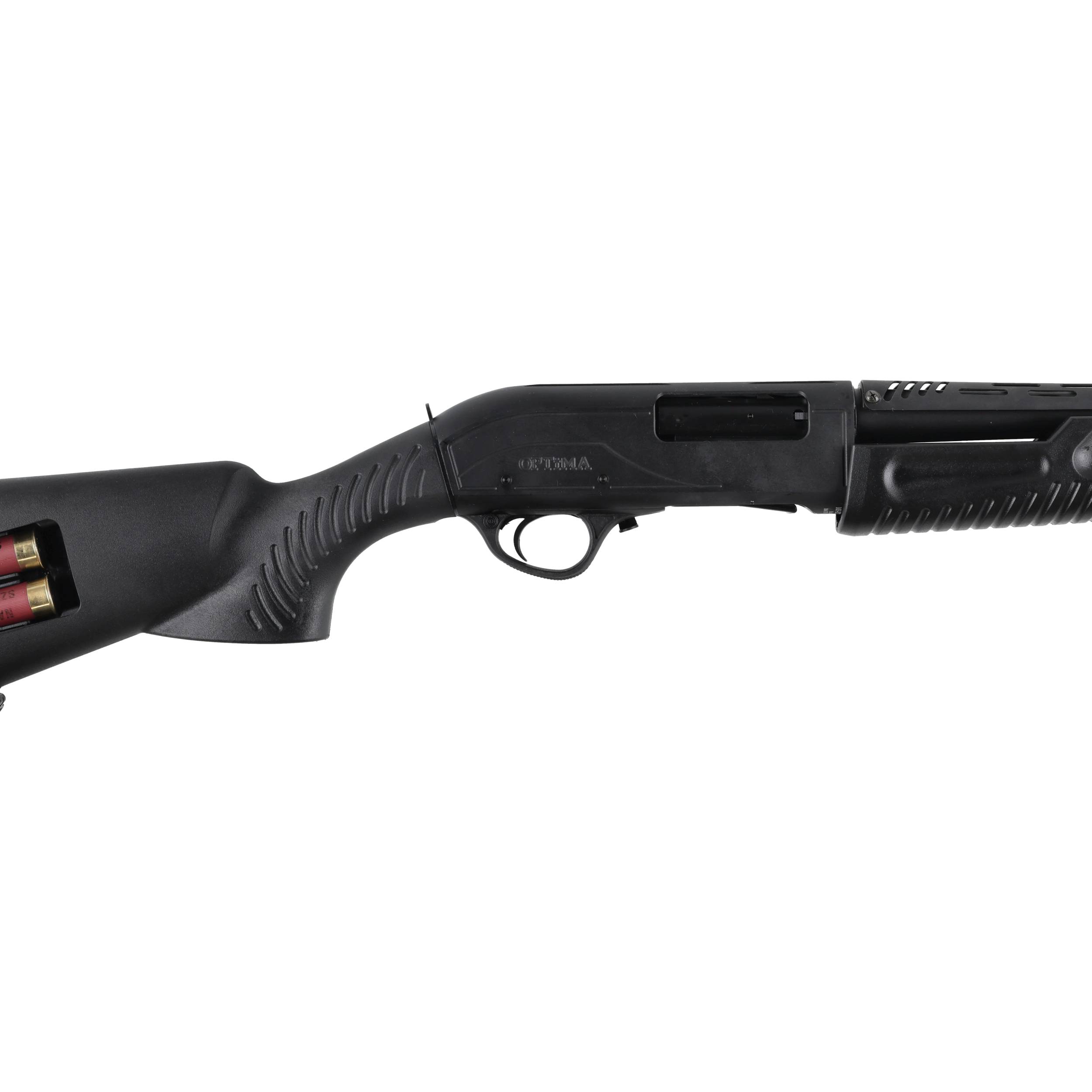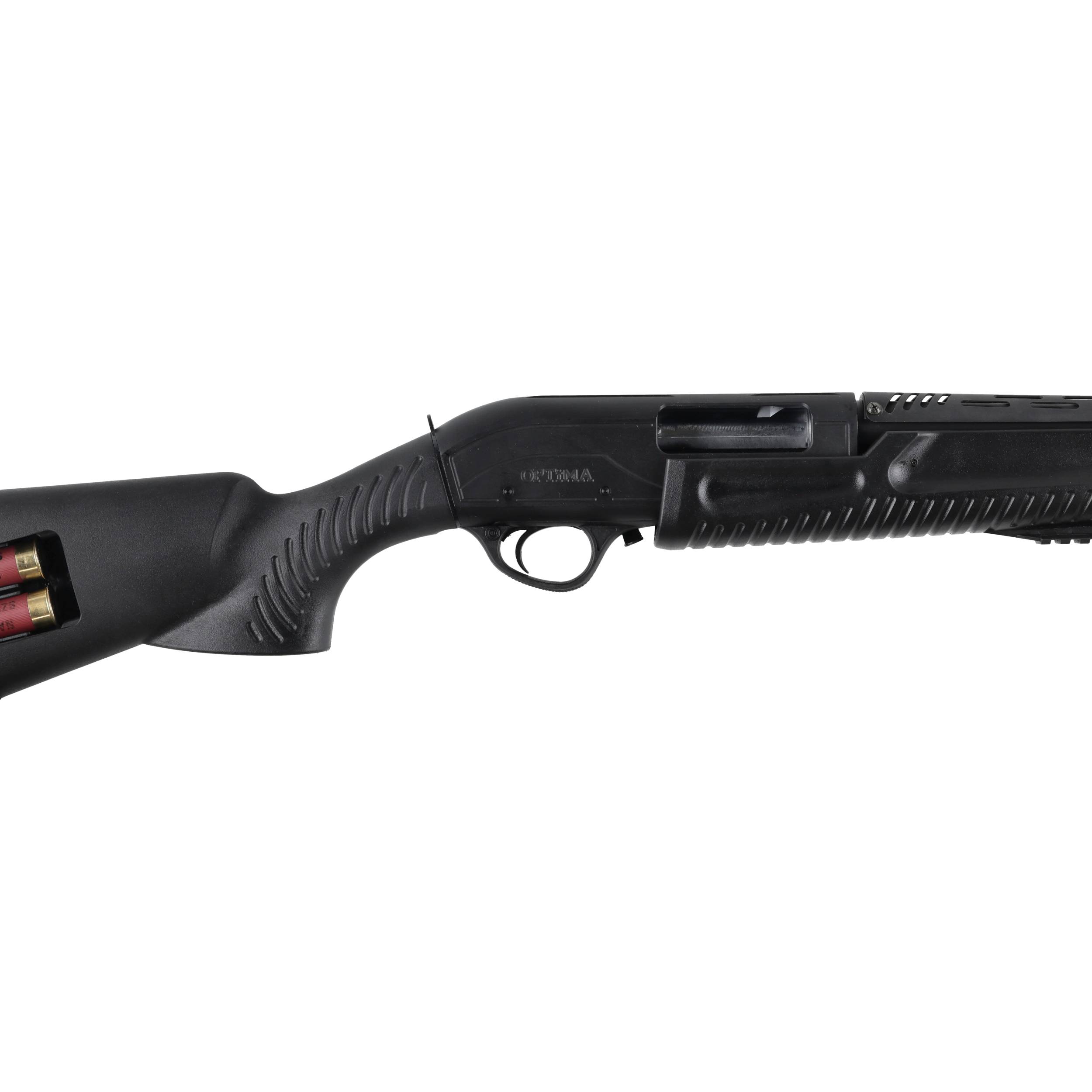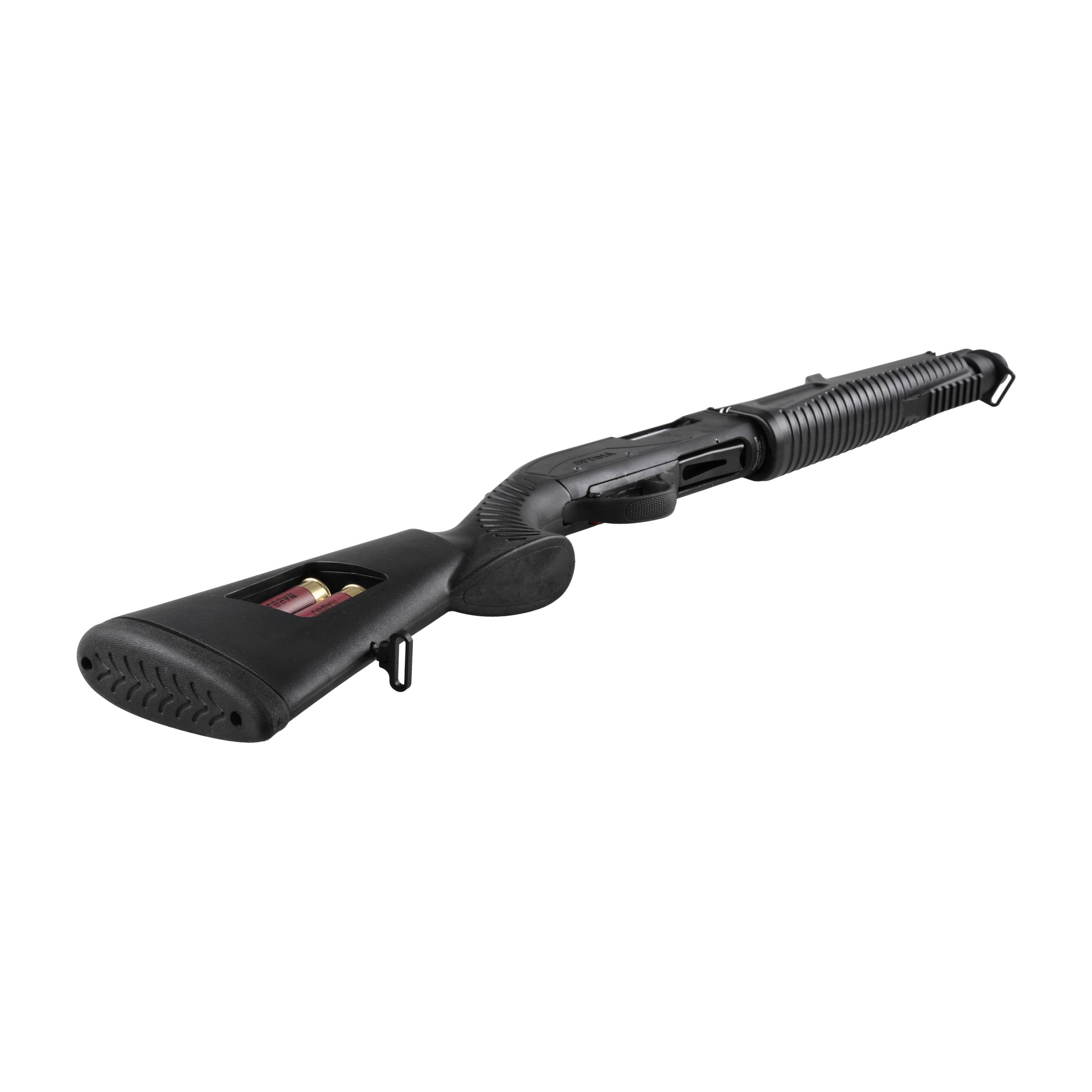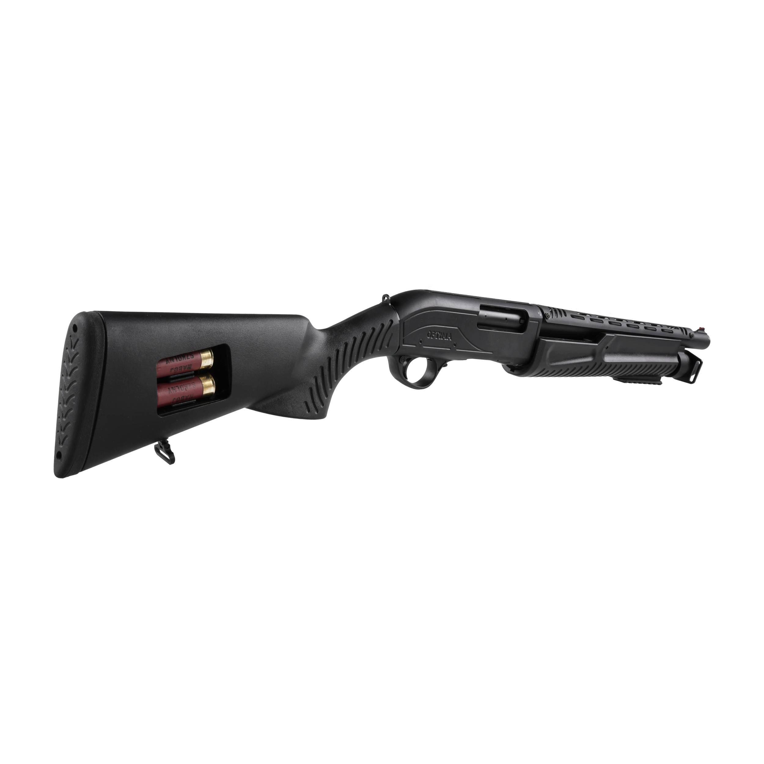 - Krótką, 14-calową lufę gwarantującą idealną manewrowość w ciasnych przestrzeniach