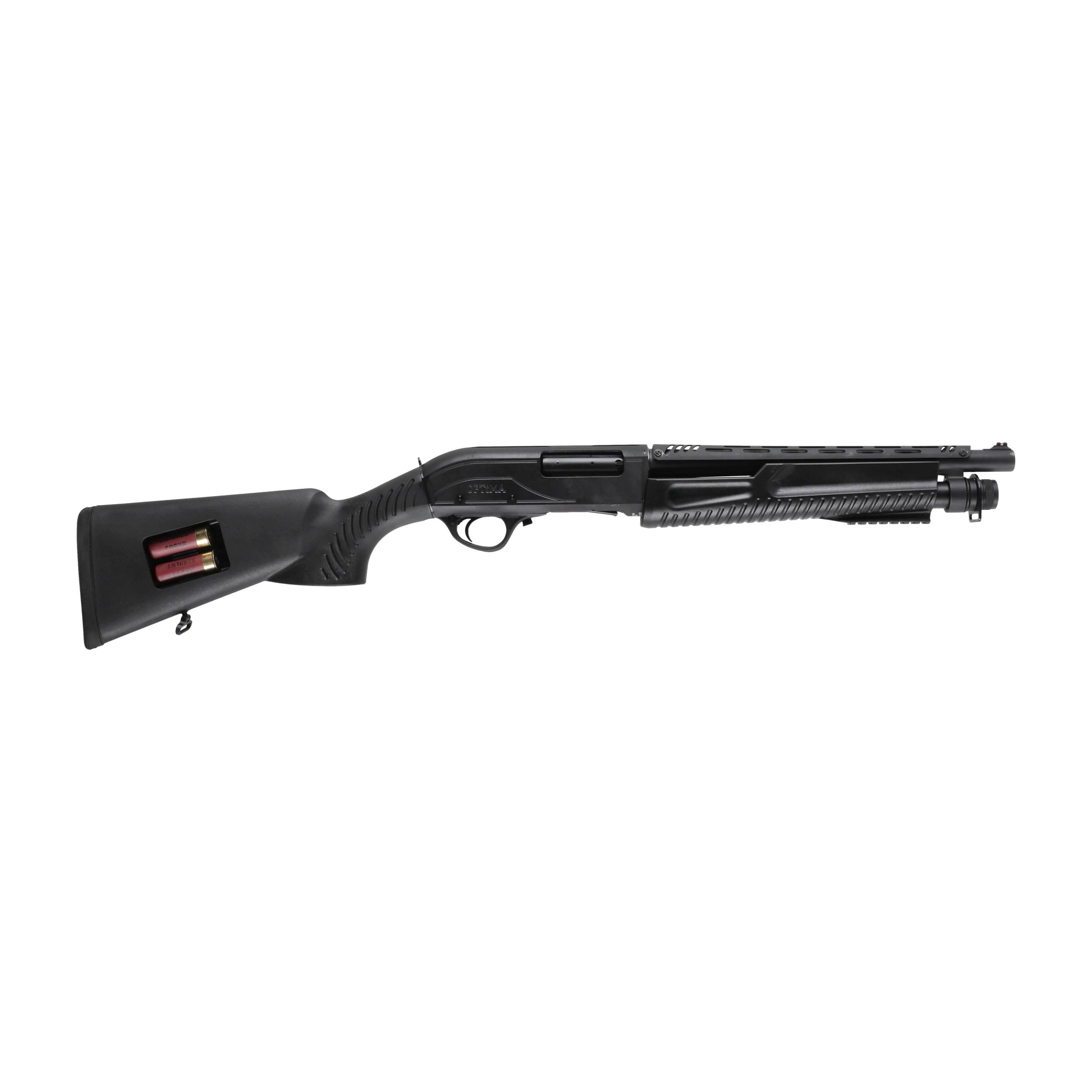 Strzelba została wyposażona w kompaktową, 14-calową lufę wykończoną powłoką powstałą elektrochemicznie. Długość ta umożliwia niezwykle sprawne manewrowanie w zamkniętych przestrzeniach. Na lufę naniesiona została osłona typu heat shield gwarantująca zabezpieczenie przed poparzeniem podczas przeładowywania strzelby. Dzięki zastosowaniu zintegrowanego czoka typu cylinder, broń pozwala na korzystanie z dowolnego rodzaju amunicji kalibru 12, zarówno śrutowej, jak i slugów.