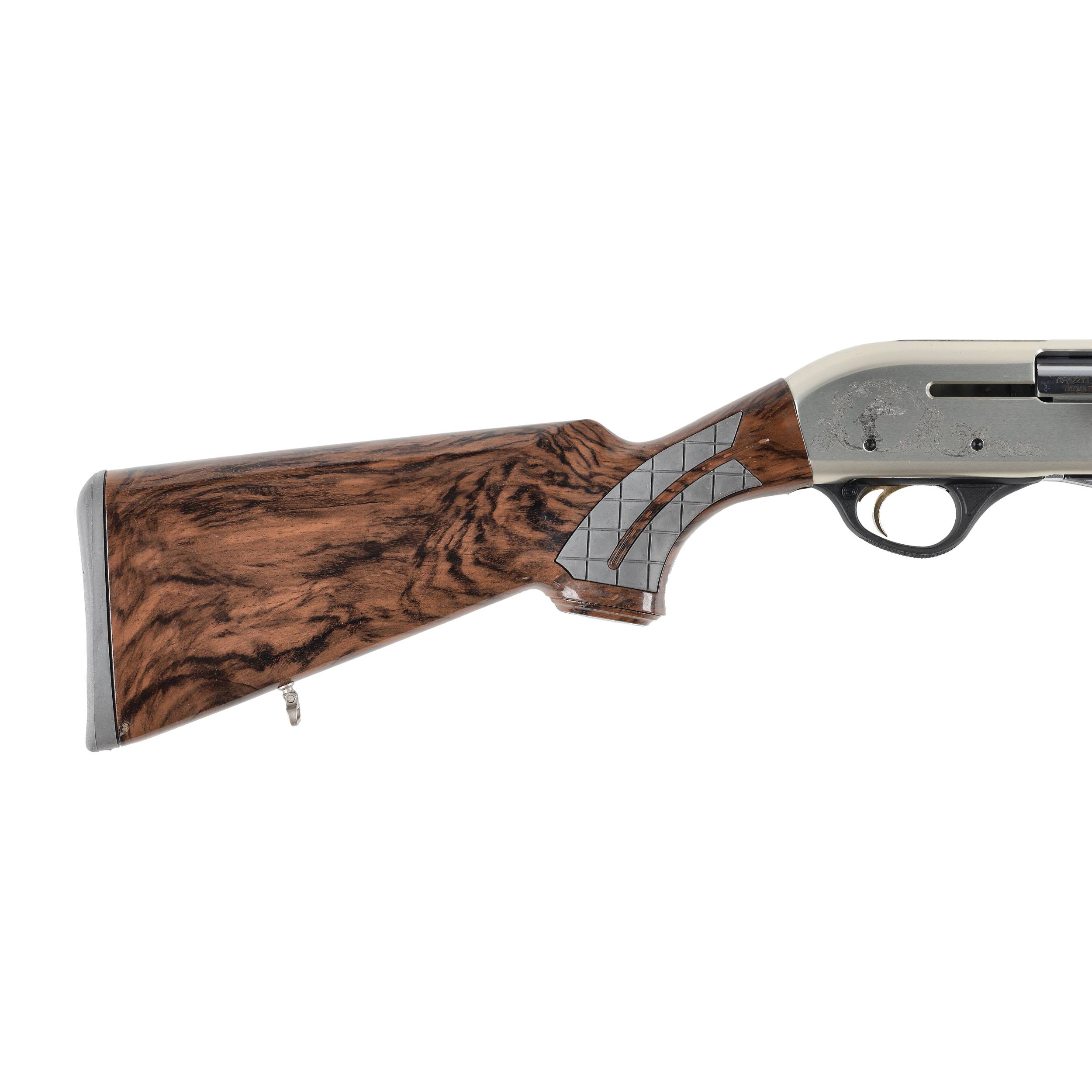 - Przedłużoną komorę nabojową pozwalającą na wykorzystanie amunicji 12/70 jak i 12/76