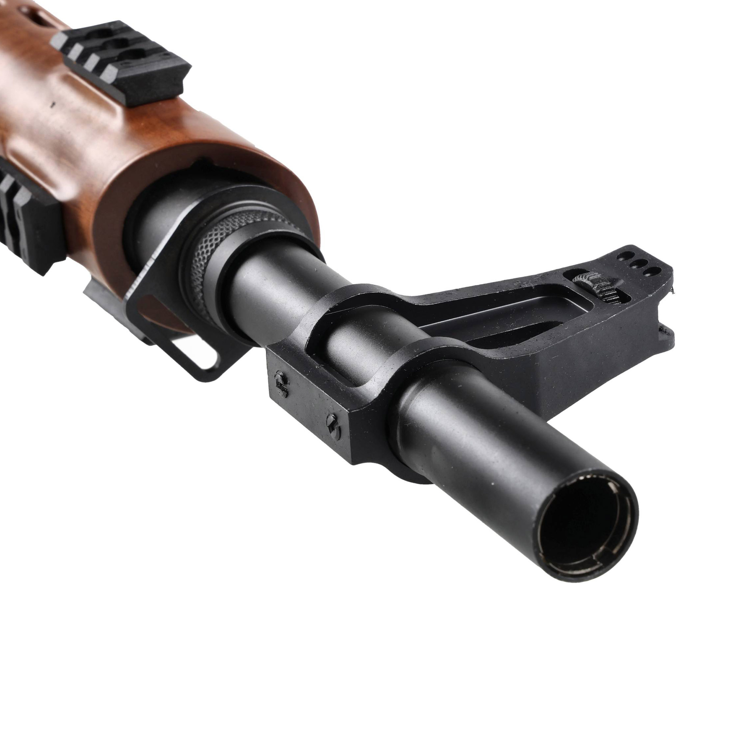 Strzelba została wyposażona w uniwersalną, 20-calową lufę przystosowaną do współpracy z systemem wymiennych czoków, który umożliwi regulację skupienia wiązki śrutu, oraz w przypadku cylindra również strzelanie pociskami typu slug. Ten ostatni czok został wyposażony w przedłużenie w postaci tłumika płomienia skutecznie redukującego rozbłysk. Pokrycie wnętrza lufy chromem gwarantuje nam odpowiednie zabezpieczenie przed korozją, jak i znaczne ułatwienie czyszczenia broni. Lufę okala drewniane łoże z odkręcanymi szynami Picatinny, które pozwolą nam na instalację akcesoriów – między innymi dołączonego w zestawie chwytu przedniego.