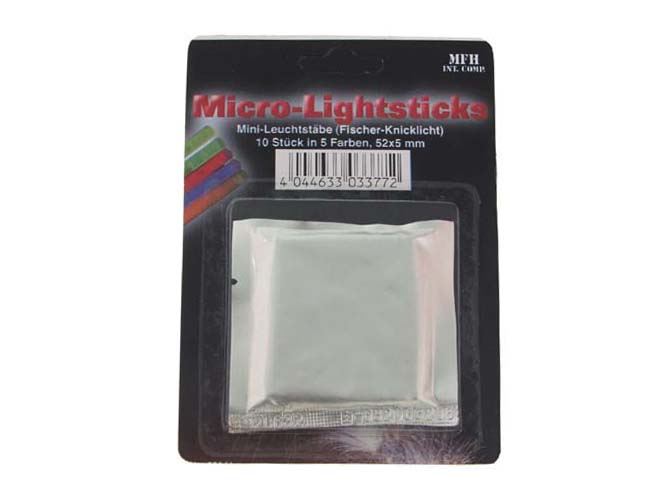 Komplet dziesięciu światełek chemicznych w pięciu kolorach. Użytkowanie ich jest wygodne i całkowicie bezpieczne, wystarczy zgiąć polimerową rurkę, żeby zaczęła świecić. Mogą zastąpić światło w domu podczas awarii elektrycznej. Są świetną alternatywą na wycieczki namiotowe. Może mieć wiele zastosowań. Przy każdym światełku umieszczony jest po jednej stronie otwór umożliwiający powieszenie go na nitce lub cienkim sznurku.