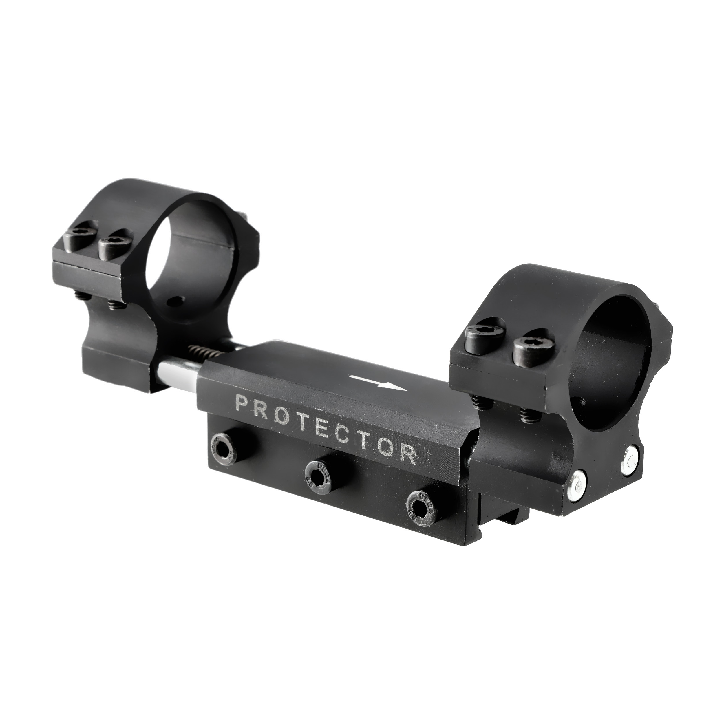 Montaż kompensacyjny Optima by Hatsan Protector, dzięki innowacyjnej konstrukcji pochłania niemal 100% energii odrzutu oddziałującego na optykę po strzale, co w oczywisty sposób chroni i przedłuża żywotność celownika.