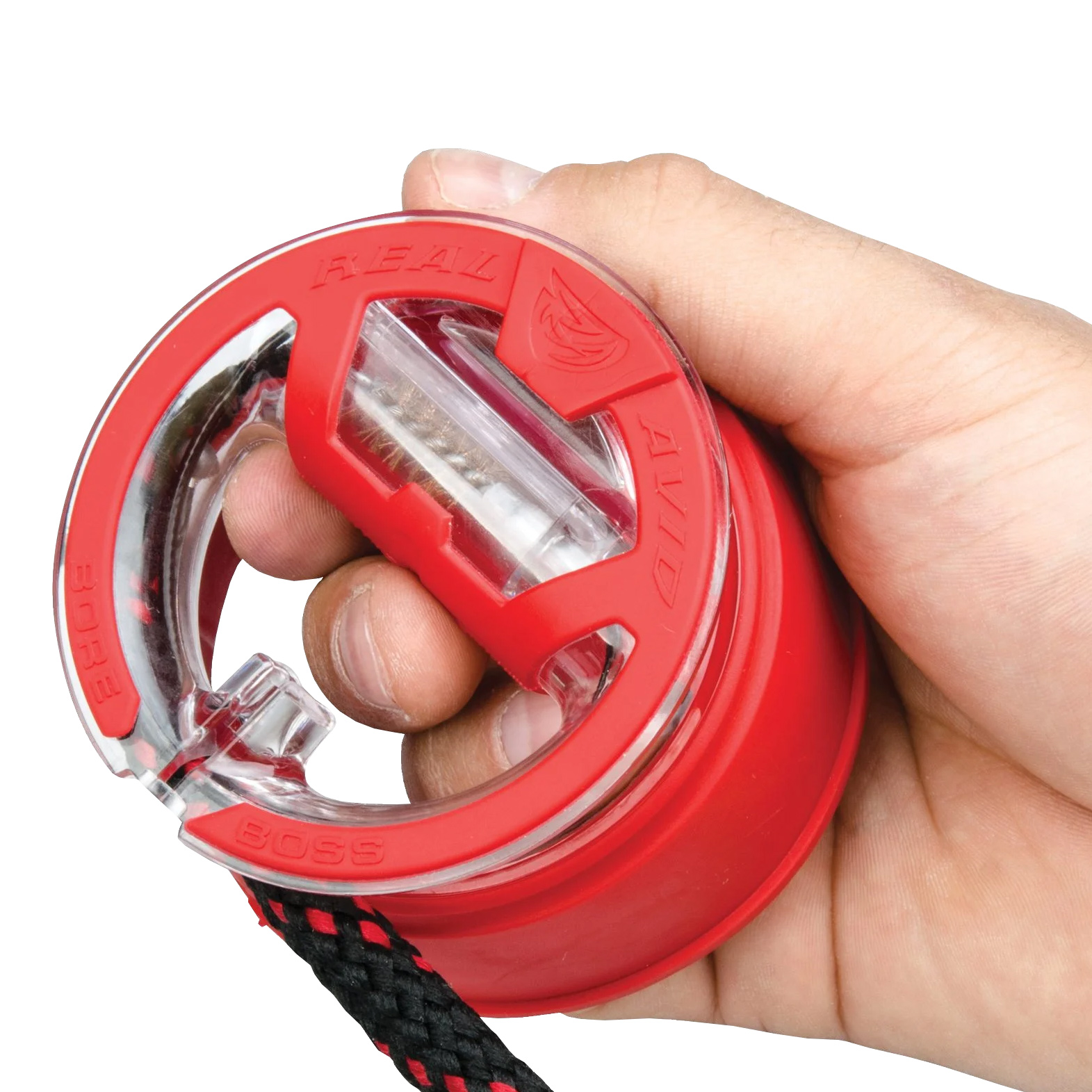 Akcesoria do czyszczenia broni Real Avid to idealny wybór dla najbardziej wymagających użytkowników. Sznur do czyszczenia lufy Bore Boss wyróżnia się na tle konkurencji niezwykle przemyślanym pojemnikiem, który pozwala na przechowywanie ubrudzonego sznura bez ryzyka zanieczyszczenia otoczenia. Co więcej, element ten służy również jako chwyt, pozwalając na wygodne przeciągnięcie sznura przez lufę. Dzięki połączeniu miedzianej szczotki z plecionym, nylonowym mopem, Bore Boss skutecznie zbiera pozostałości z gwintu, jednocześnie rozprowadzając preparat konserwujący równomiernie po jego powierzchni.