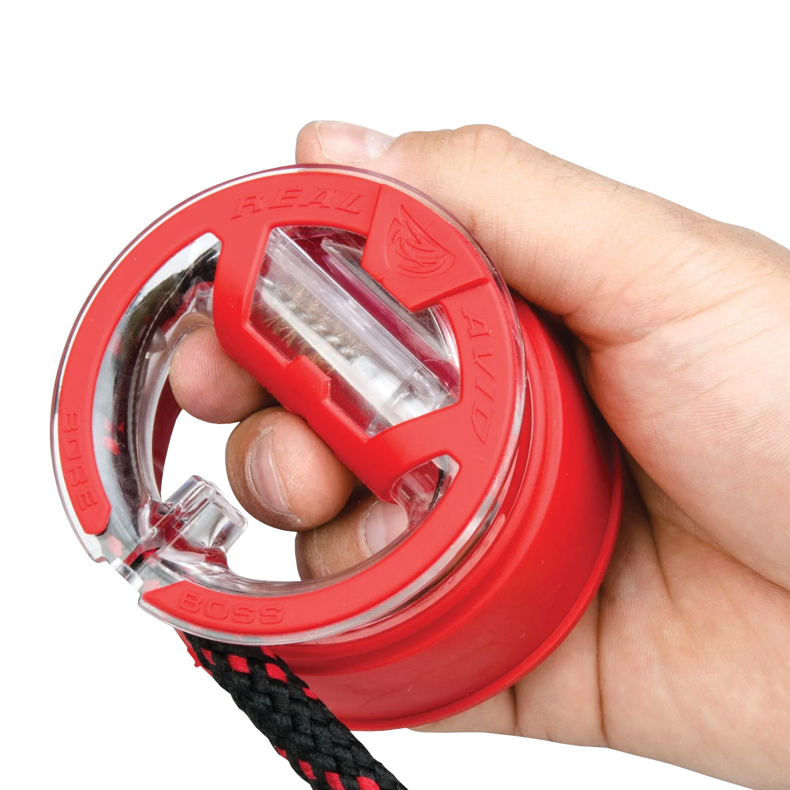 Akcesoria do czyszczenia broni Real Avid to idealny wybór dla najbardziej wymagających użytkowników. Sznur do czyszczenia lufy Bore Boss wyróżnia się na tle konkurencji niezwykle przemyślanym pojemnikiem, który pozwala na przechowywanie ubrudzonego sznura bez ryzyka zanieczyszczenia otoczenia. Co więcej, element ten służy również jako chwyt, pozwalając na wygodne przeciągnięcie sznura przez lufę. Dzięki połączeniu miedzianej szczotki z plecionym, nylonowym mopem, Bore Boss skutecznie zbiera pozostałości z gwintu, jednocześnie rozprowadzając preparat konserwujący równomiernie po jego powierzchni.