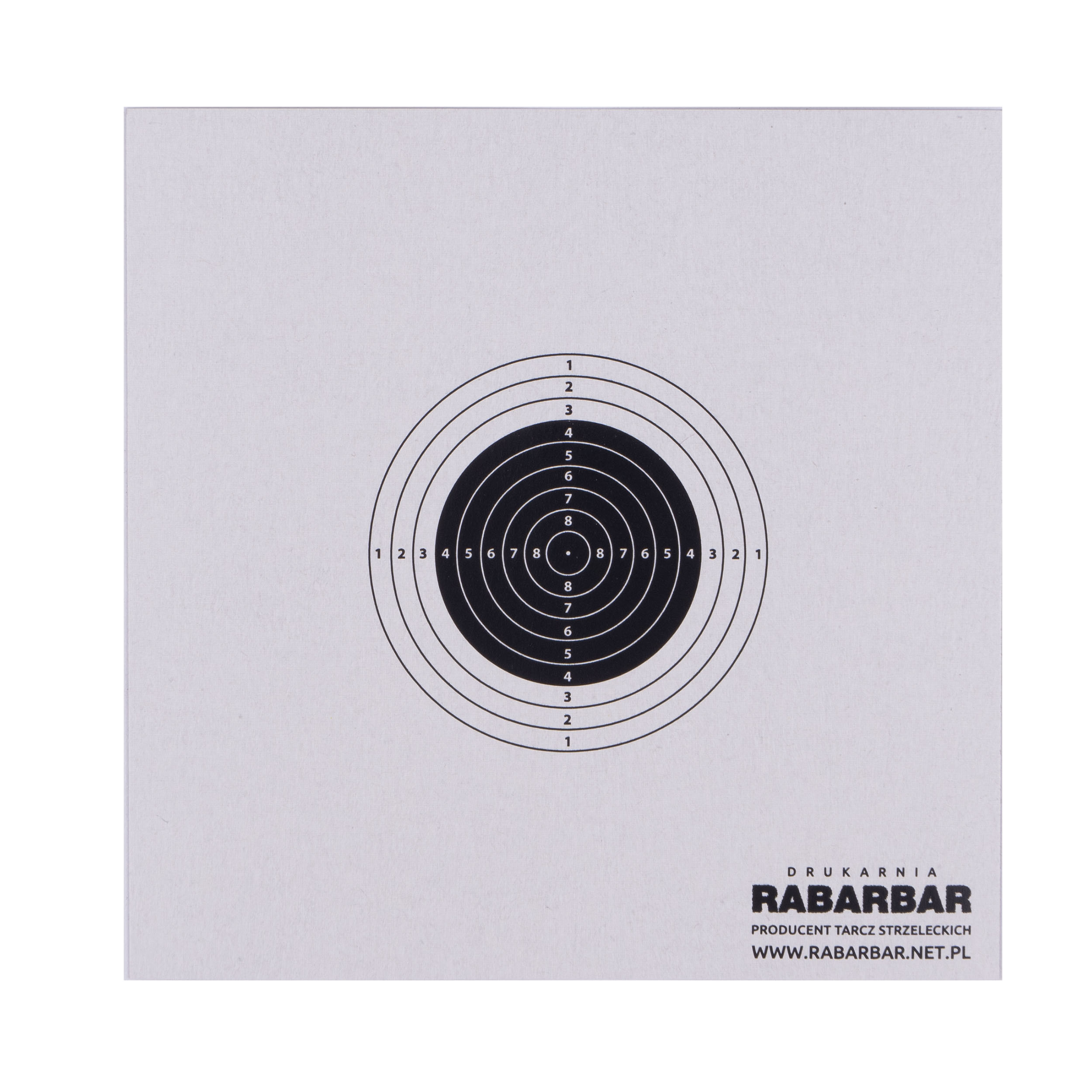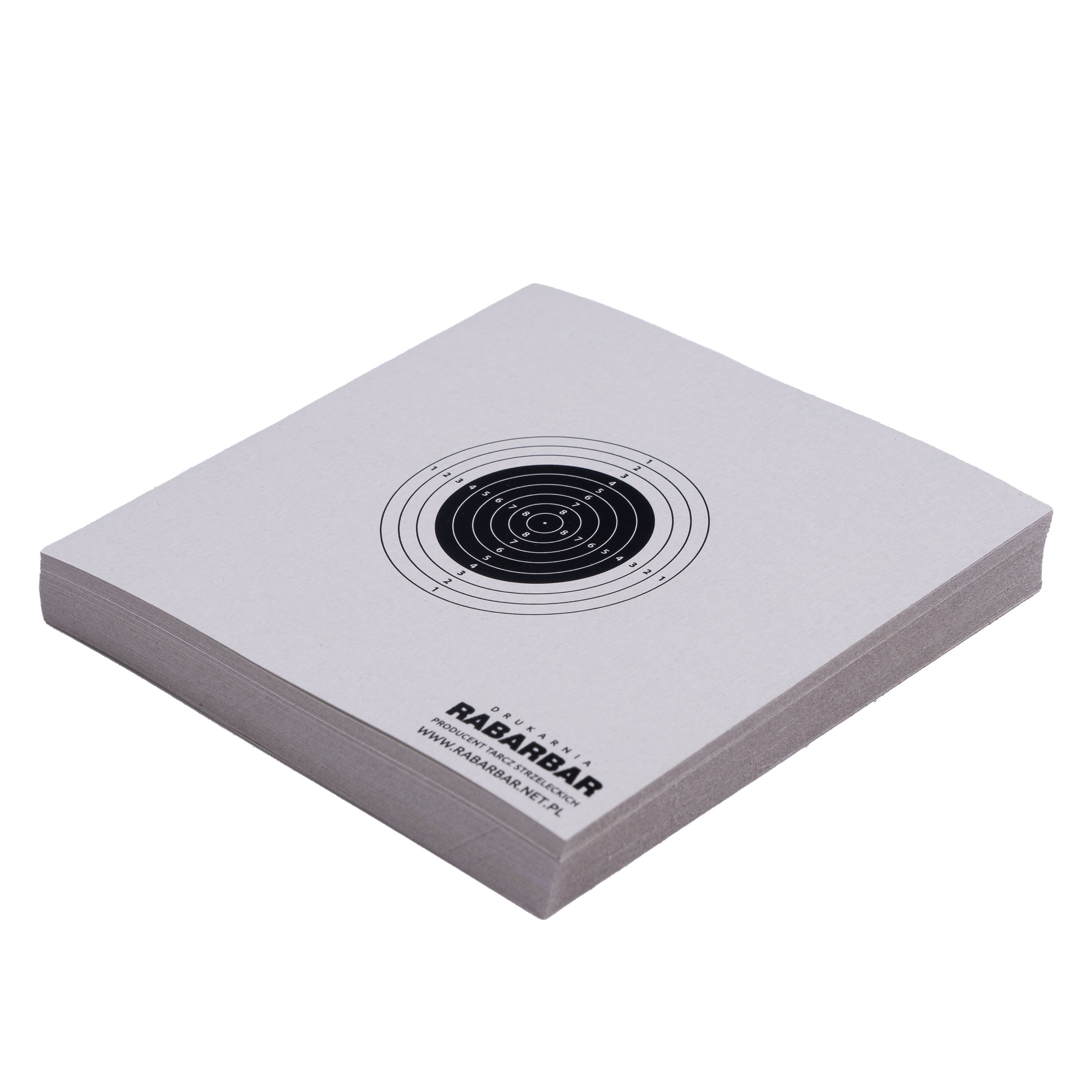 Tarcza o wymiarach 100 × 100 mm,  wykonana z kartonu jednostronnie powlekanego. Produkt zgodny z wymogami ISSF i PZSS.