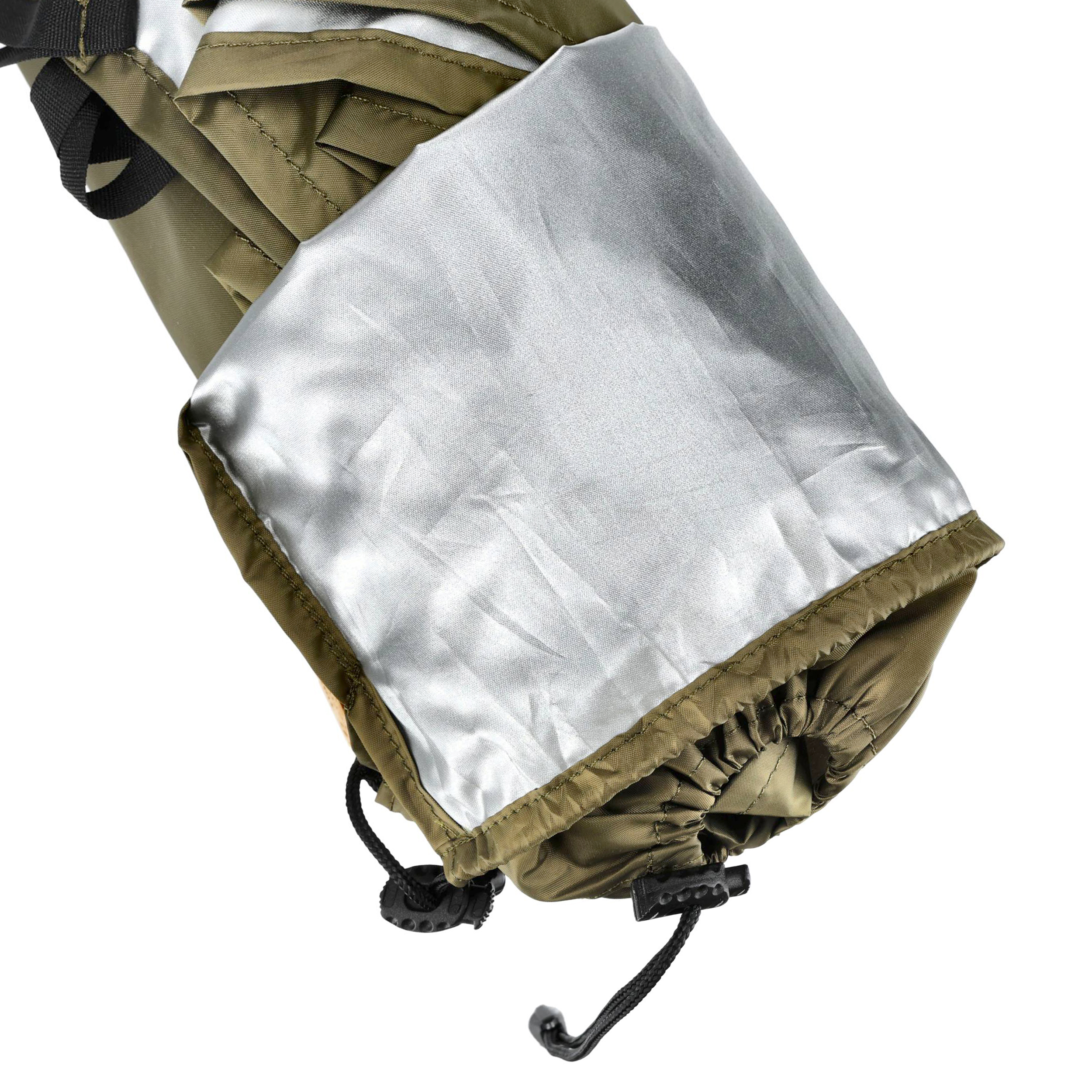 Dodatkowo materiał został pokryty warstwą termoizolacyjną, co zwiększa komfort termiczny, szczególnie gdy temperatura na zewnątrz spada. W gorące dni, warstwa odbija promienie słoneczne, pomagając obniżyć temperaturę pod tarpem.
