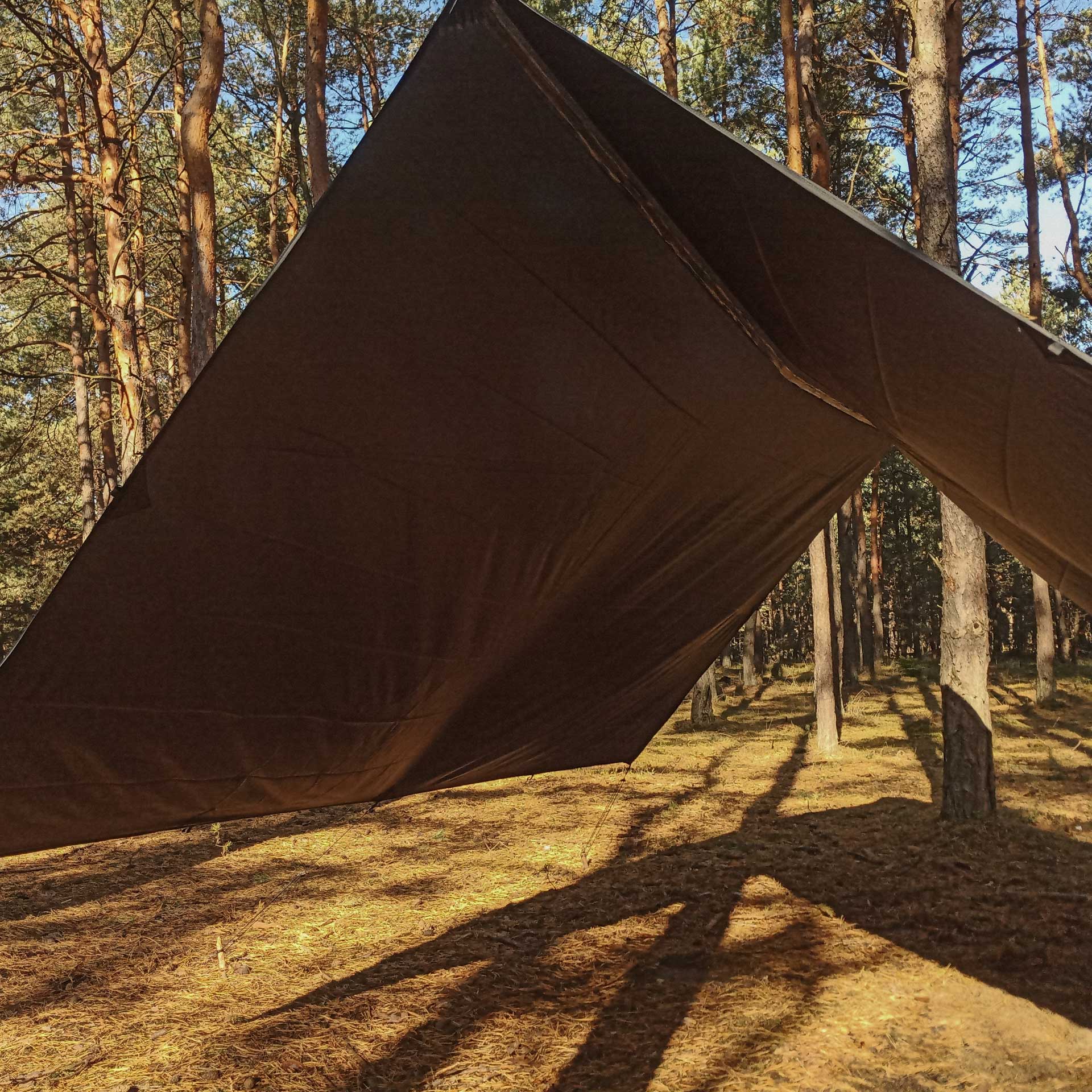 Możliwości, jakie zapewnia tarp są dosłownie niezliczone – od możliwości stworzenia prostego zadaszenia chroniącego przed deszczem, przez obszerne konstrukcje gwarantujące nam wygodę przebywania w ich wnętrzu po aerodynamiczne norki doskonale zabezpieczające przed trudnymi warunkami atmosferycznymi. Istotną zaletą tego typu schronienia jest również brak konieczności noszenia kompatybilnego stelażu. W jego roli doskonale posłużą kijki trekkingowe, znalezione w lesie gałęzie lub nawet same linki naciągowe. Każdy tarp TigerWood posiada wzmocnienia punktów odciągu oraz podklejone szwy, dzięki czemu gwarantuje zwiększoną trwałość oraz odporność na intensywne podmuchy wiatru.