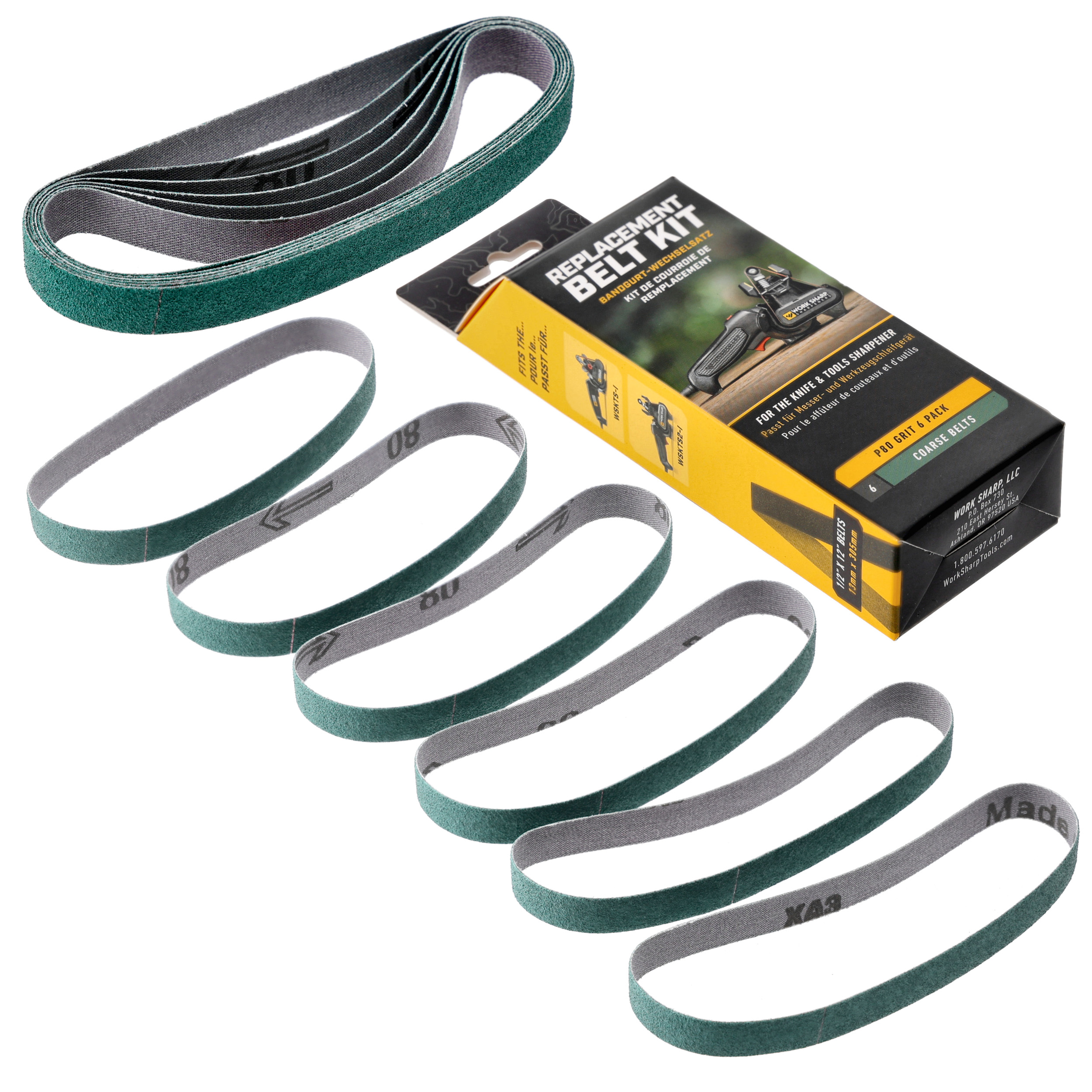 Zestaw 6 oryginalnych pasów ściernych o gradacji 80, dedykowanych do ostrzałki elektrycznej Work Sharp WSKTS.
