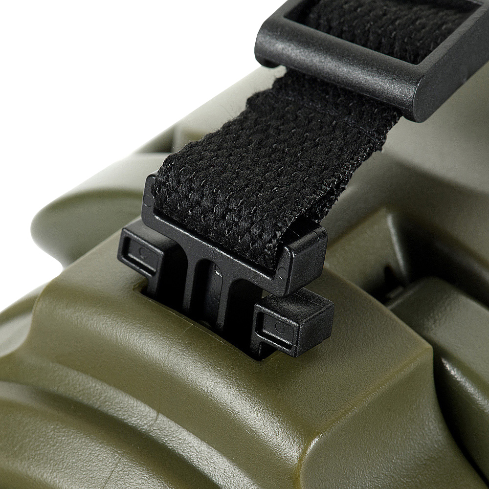 Ekstremalnie wytrzymała konstrukcja została uzyskana dzięki nylonowej skorupie, dodatkowo izolującej wnętrze, oraz skutecznie zabezpieczającej stalowe elementy przed uderzeniami. Dzięki zastosowaniu podwójnych ścianek ze stali nierdzewnej termos idealnie izoluje napój od temperatury zewnętrznej, jednocześnie nie wpływając w żaden sposób na jego smak. Pokrywka z zamknięciem gwarantuje nam idealne uszczelnienie, a naniesiona powłoka proszkowa ogranicza zadrapania, dzięki czemu modelowi od M-Tac niestraszne są przygody w trudnym terenie.