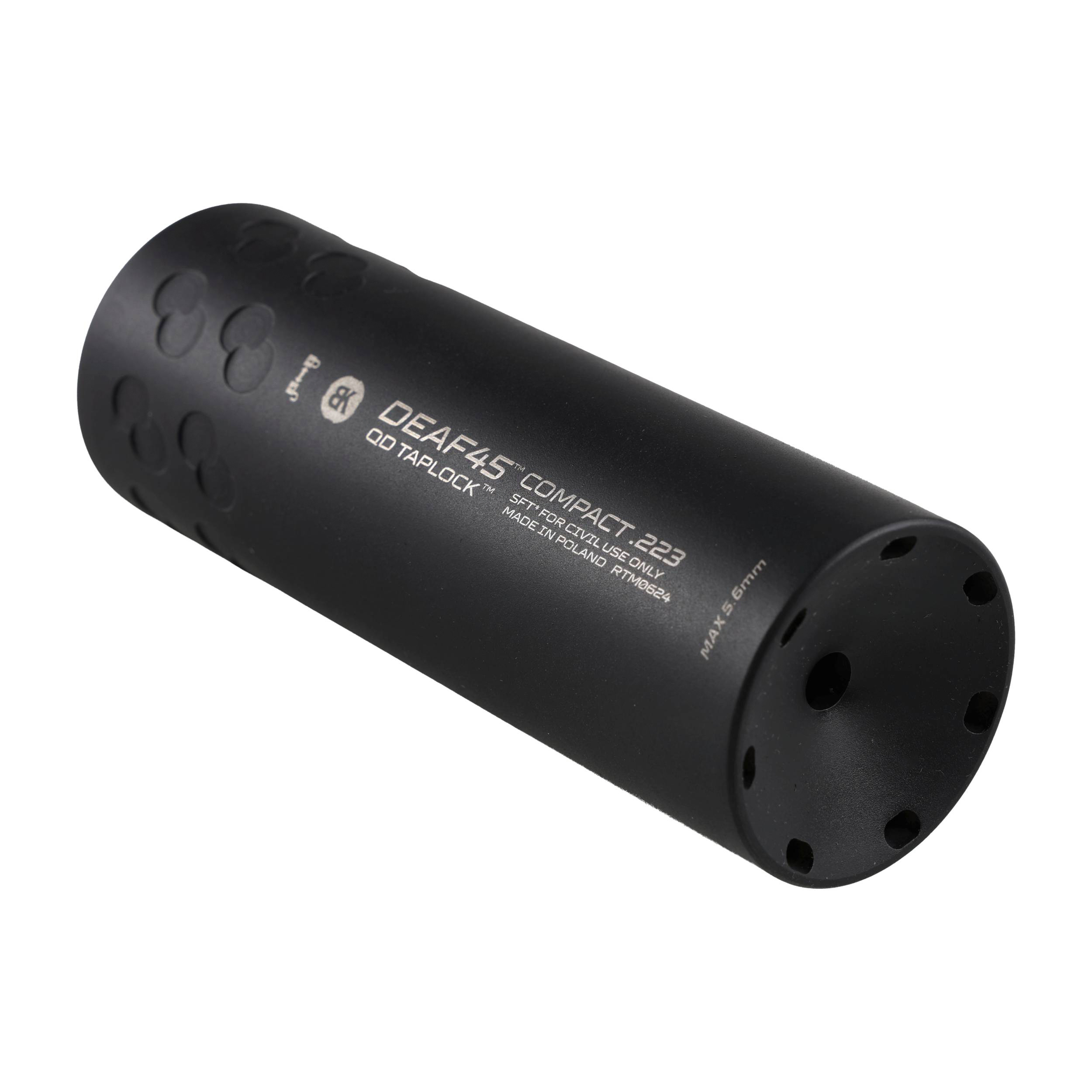 Zestaw kompaktowego łumika dźwięku współpracującego za pomocą systemu QD z dołączonym urządzeniem wylotowym to idealne rozwiązanie dla każdej osoby, zajmującej się strzelectwem dynamicznym. Połączenie skutecznej redukcji hałasu oraz niewielkich wymiarów z systemami zapewniającymi możliwie komfortową pracę na wytłumionej broni sprawiają, że moderator BK Precise DEAF45 COMPACT QD Taplock doskonale sprawdzi się wszędzie tam, gdzie spodziewamy się dużej intensywności ognia. Wersja z hamulcem wylotowym dostosowana do użycia na broni z gwintem ½-28 UNEF.