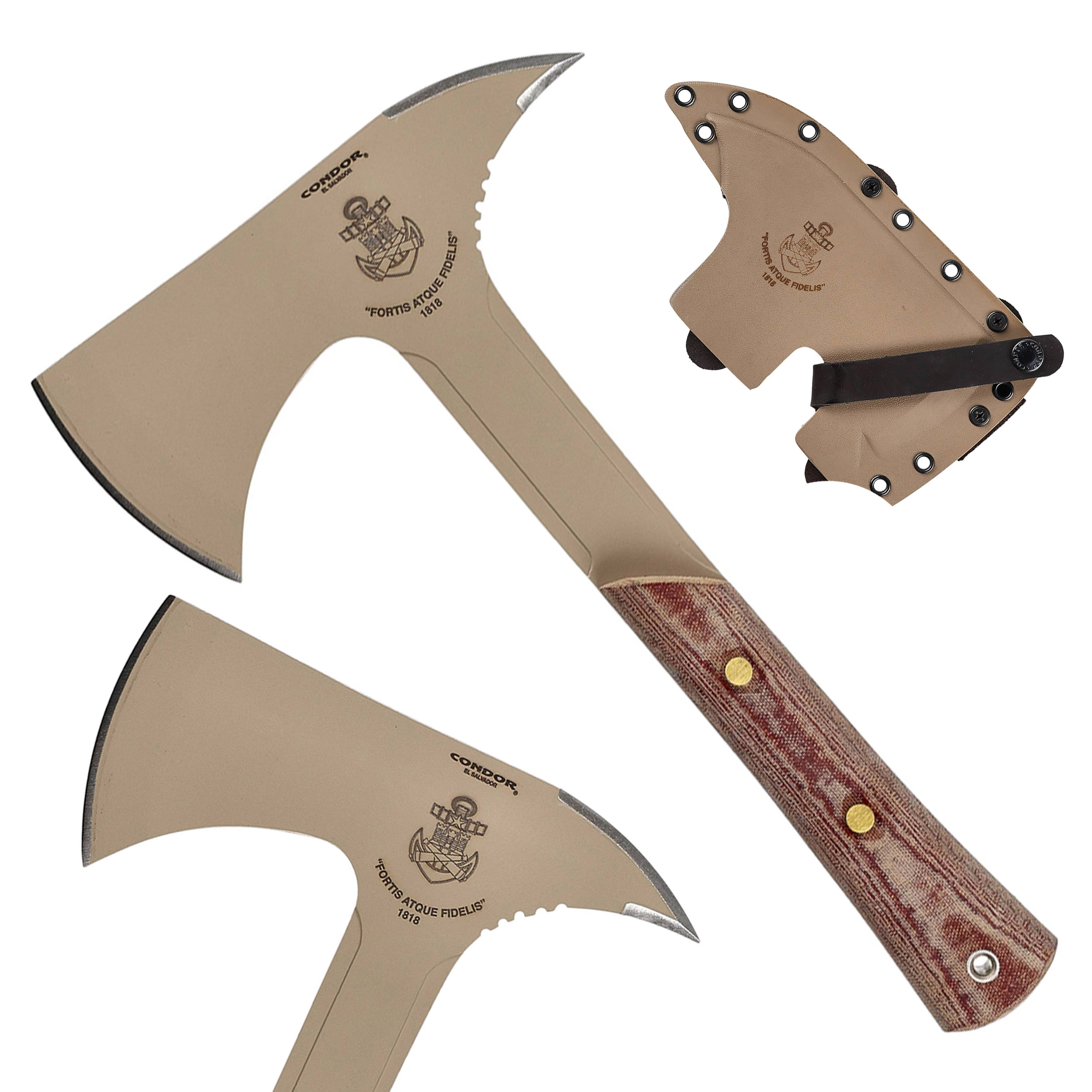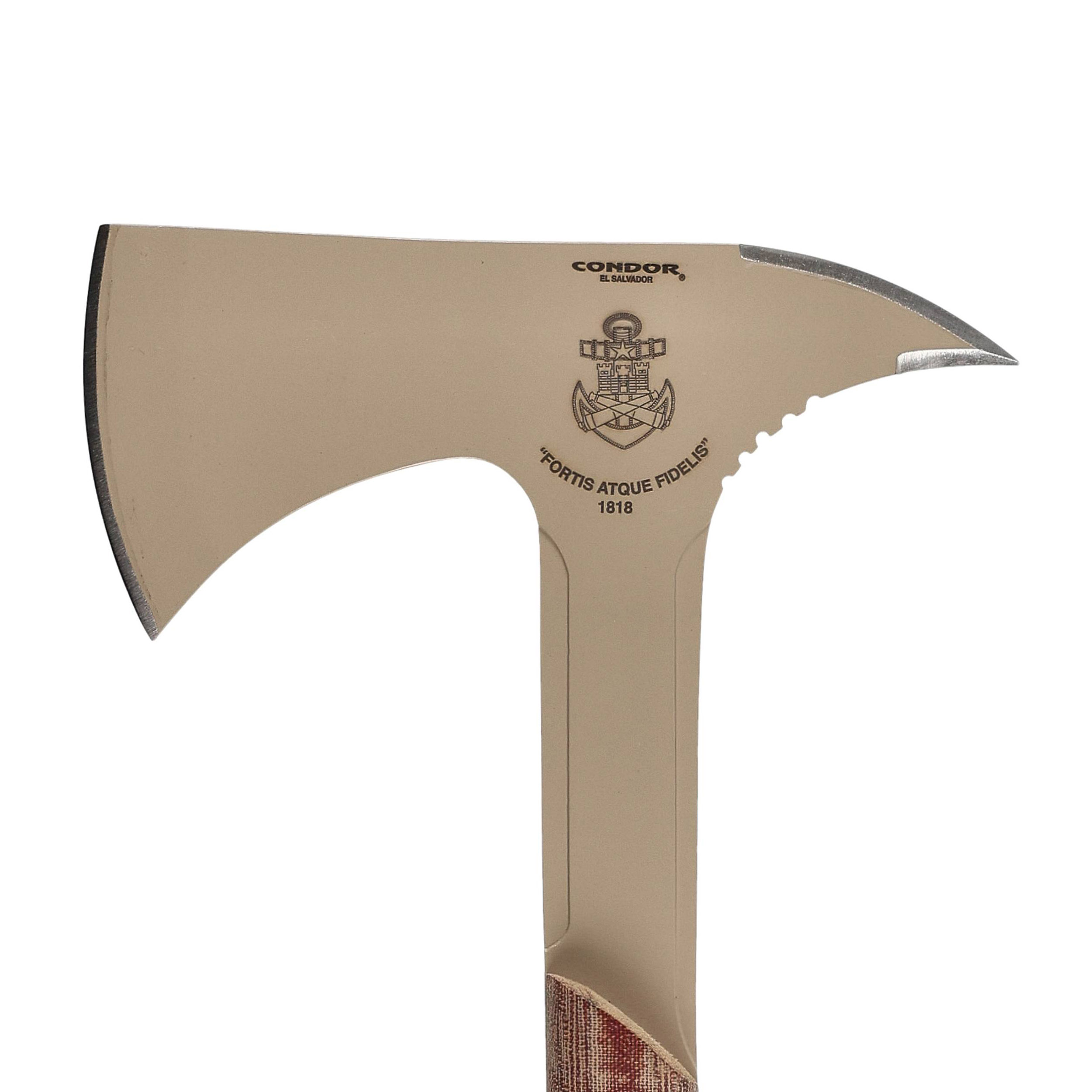 Fortis Fidelis Axe od firmy Condor to taktyczny topór, który wziął swoją nazwę od motta chilijskiego korpusu piechoty morskiej, którym jest „Fortis Atque Fidelis” (silny i wierny). Ponad 200 lat temu „żołnierze korpusu morskiego” otrzymali misję utworzenia Sił Szturmowych, których jednym z elementów wyposażenia był "topór abordażowy", na którym wzorowana jest obecna konstrukcja.