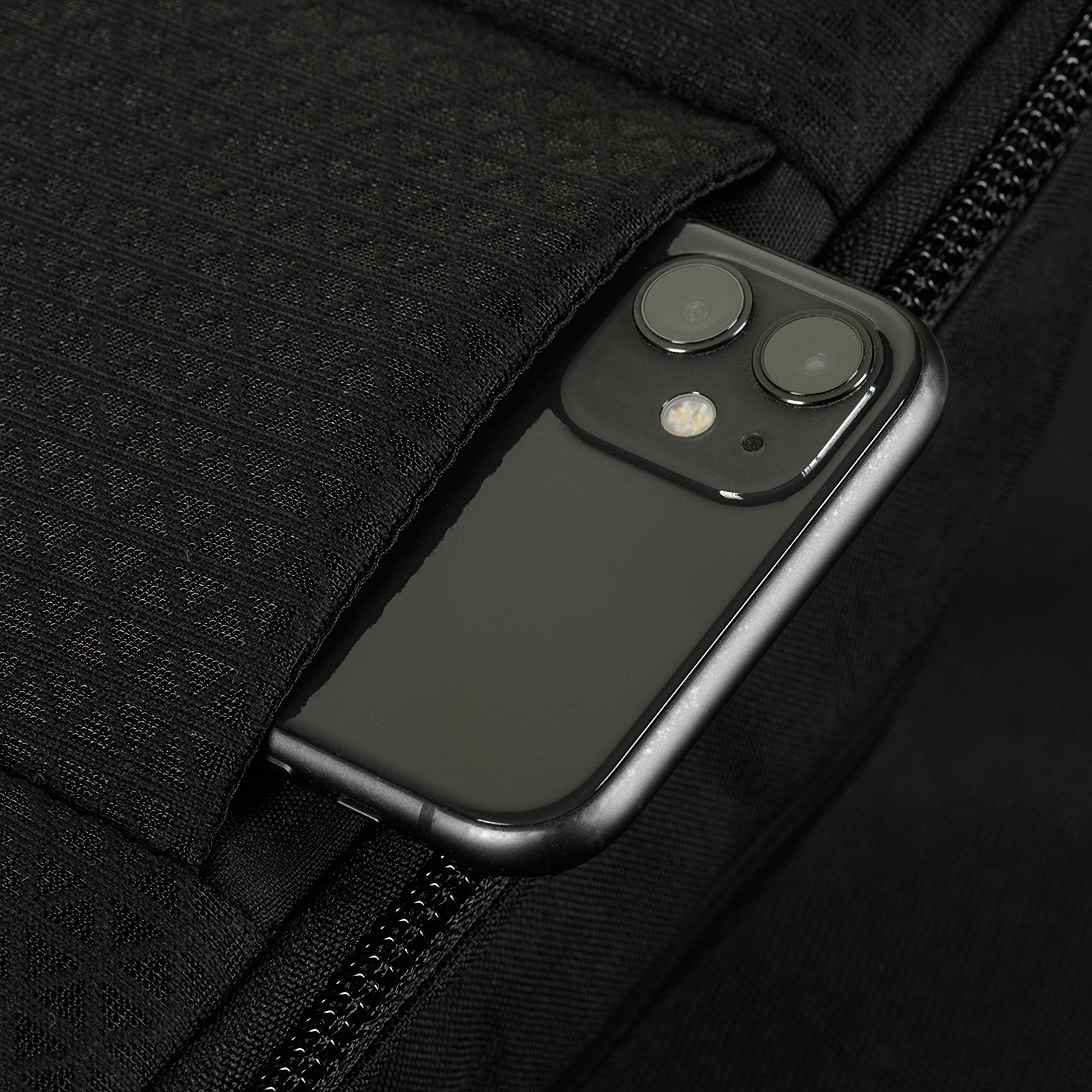 Z tyłu torby umieszczona została otwarta, pionowa kieszeń z łatwym dostępem, która idealnie sprawdzi się do przenoszenia smartfona.
