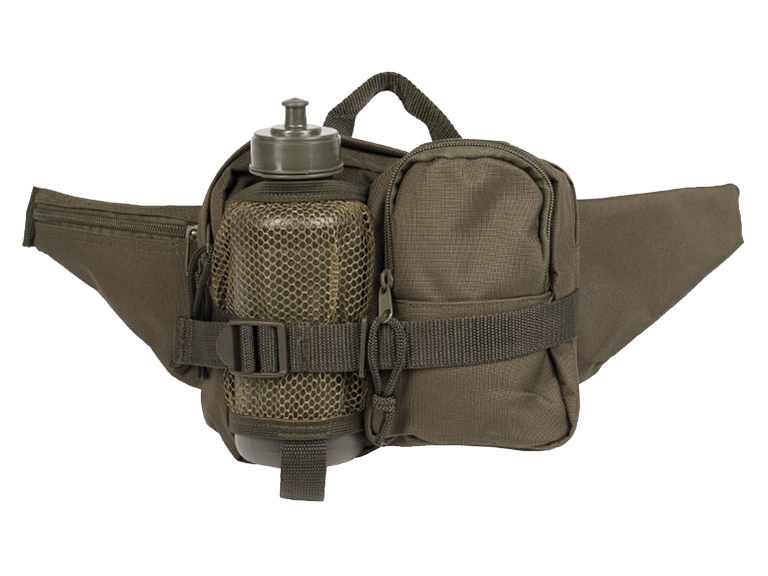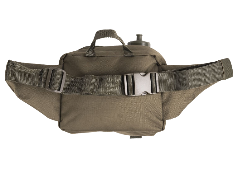 Torba Mil-Tec z butelką oliwkowa to duża torba biodrowa z kieszenią na bidon, przeznaczona do turystyki, survivalu, militarnych gier terenowych oraz innej aktywności outdoorowej.