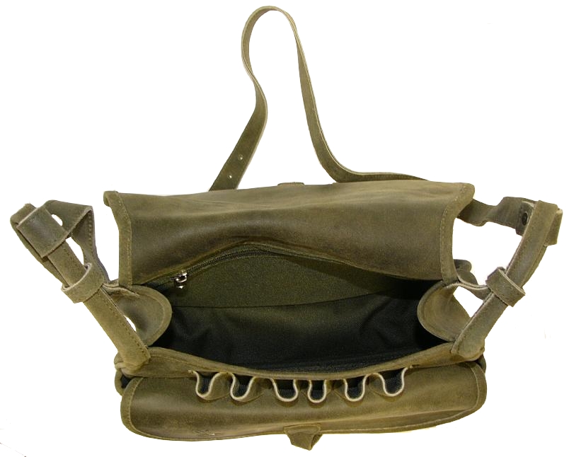 Torba myśliwska wykonana jest całkowicie ze skóry naturalnej. We wnętrzu torby umieszczona jest praktyczna, zasuwana kieszonka. Na zewnątrz przyszyta jest pojemna kieszeń oraz ładownice na 6 naboi. Zgrabna, ładna torba w sam raz dla myśliwego i nie tylko.