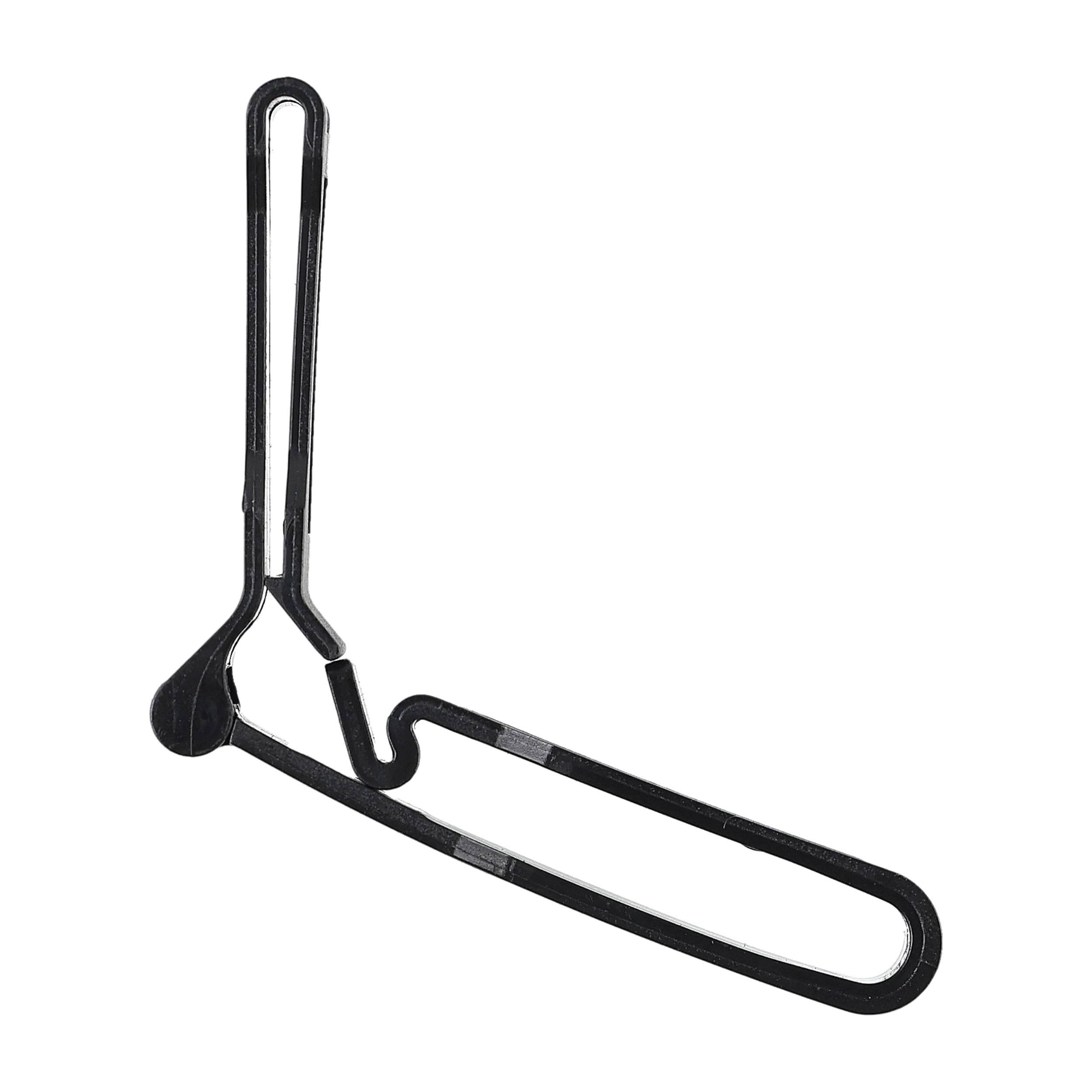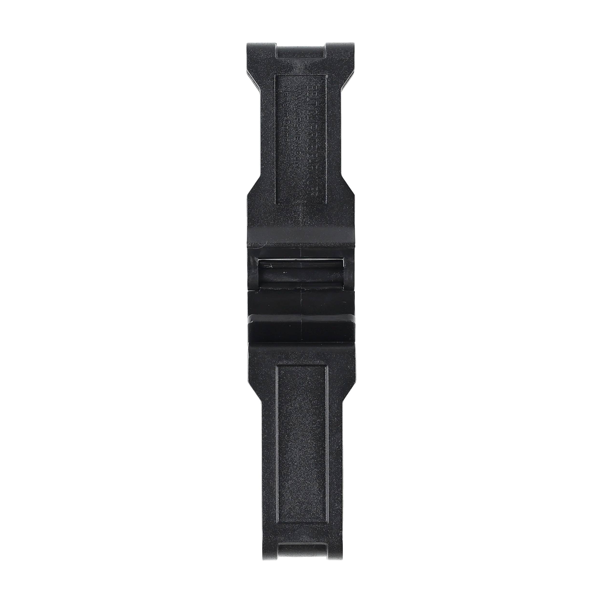 Wykonany z wytrzymałego polimeru, co zapewnia długą żywotność akcesorium. Uchwyt wyposażony jest w zawias, który umożliwia stabilne umieszczenie słuchawek, ograniczając ich niekontrolowane ruchy. Uniwersalna szlufka jest kompatybilna z większością dostępnych na rynku pasków.