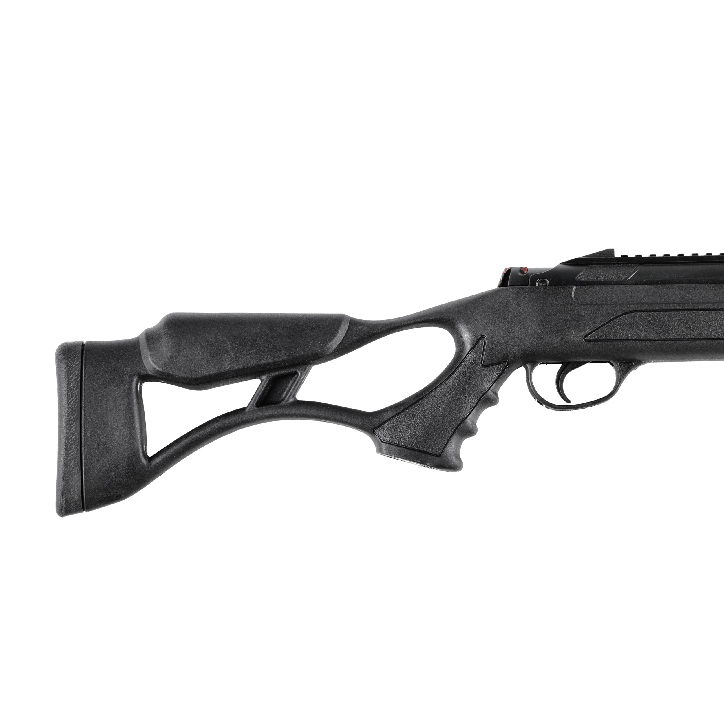 Polimerowa osada typu Thumb-hole, posiada wygodny chwyt pistoletowy oraz przestrzeń na kciuk zwiększając komfort, oraz kontrolę nad karabinkiem. Symetryczna kolba Monte Carlo z wysoką baką policzkową umożliwia wygodne strzelanie osobom prawo i leworęcznym.