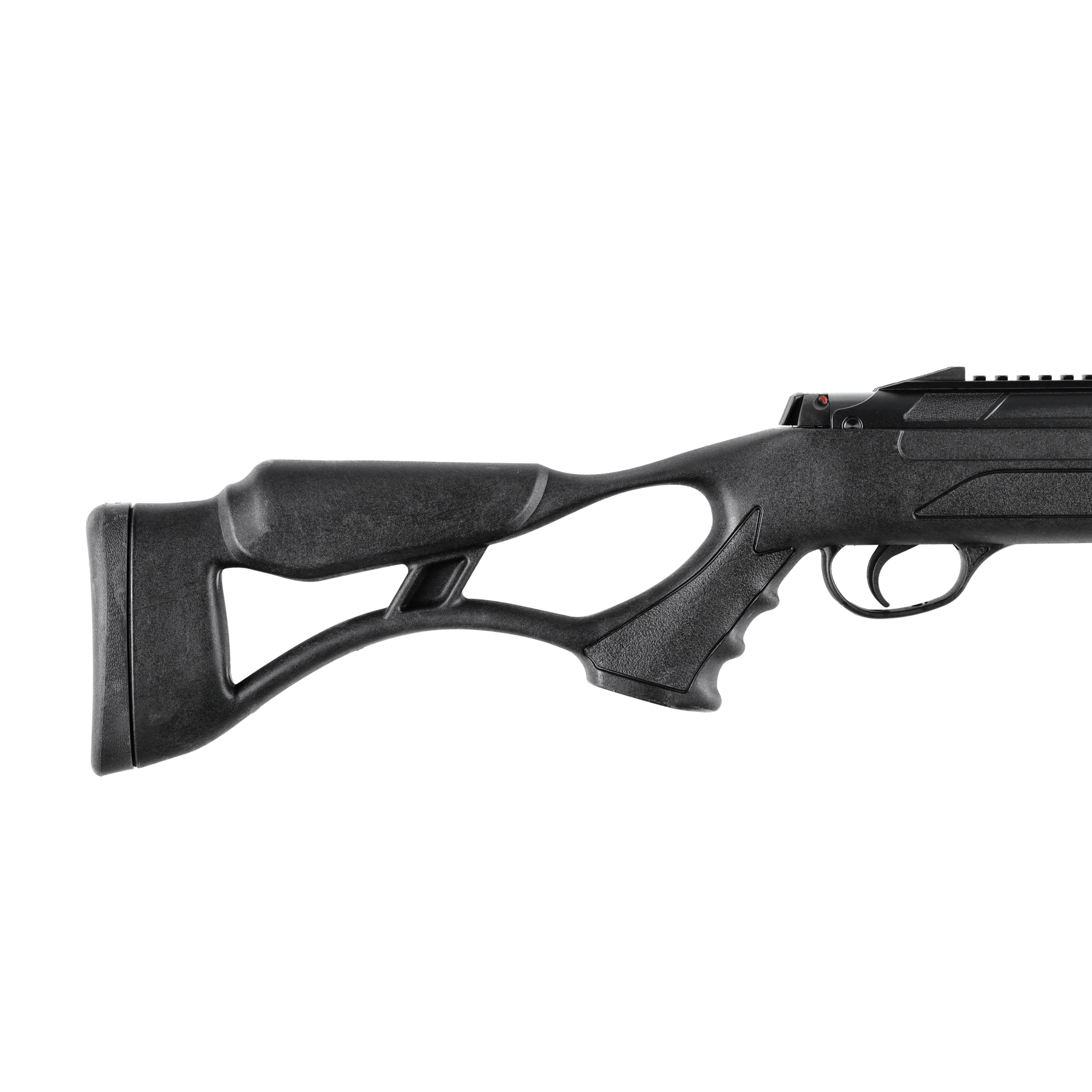 Polimerowa osada typu Thumb-hole posiada wygodny chwyt pistoletowy oraz przestrzeń na kciuk zwiększając komfort, oraz kontrolę nad karabinkiem. Symetryczna kolba Monte Carlo z wysoką baką policzkową umożliwia wygodne strzelanie osobom prawo i leworęcznym. Na przedniej części łoża oraz chwycie naniesiono estetyczne ryflowanie, która poprawia chwyt oraz design wiatrówki. Wentylowana gumowa stopka w dużym stopniu absorbuje energię wystrzału, oraz tworzy stabilny punkt oparcia. Światłowodowe przyrządy celownicze TruGlo, ułatwiają i przyspieszają celowanie, zwłaszcza przy mocnym świetle słonecznym. Szyna 11 mm umożliwia montaż wybranego celownika optycznego.