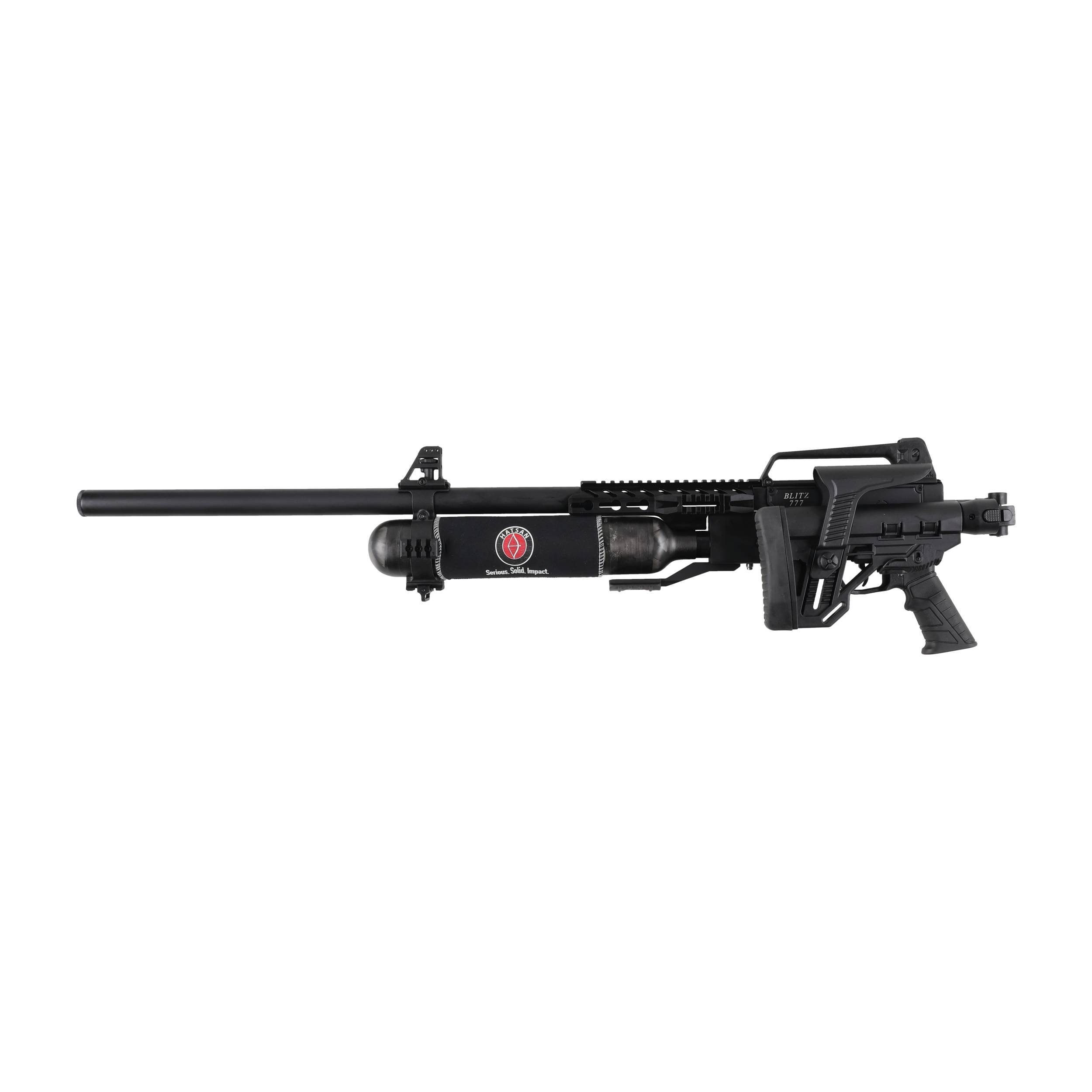 Zmodernizowana kolba, przedłużona lufa, ogień automatyczny w trybie Full Auto oraz półautomatyczny Semi Auto Action (krótkie serie), selektor ognia, pojemny carbonowy kartusz i cyfrowy manometr – wszystko po to, by zapewnić maksymalną precyzję i nieprzerwaną radość ze strzelania. Blitz 777 oferuje ogromną moc i wysoką kulturę pracy, dzięki czemu każdy strzał jest nie tylko precyzyjny, ale i niesamowicie satysfakcjonujący.