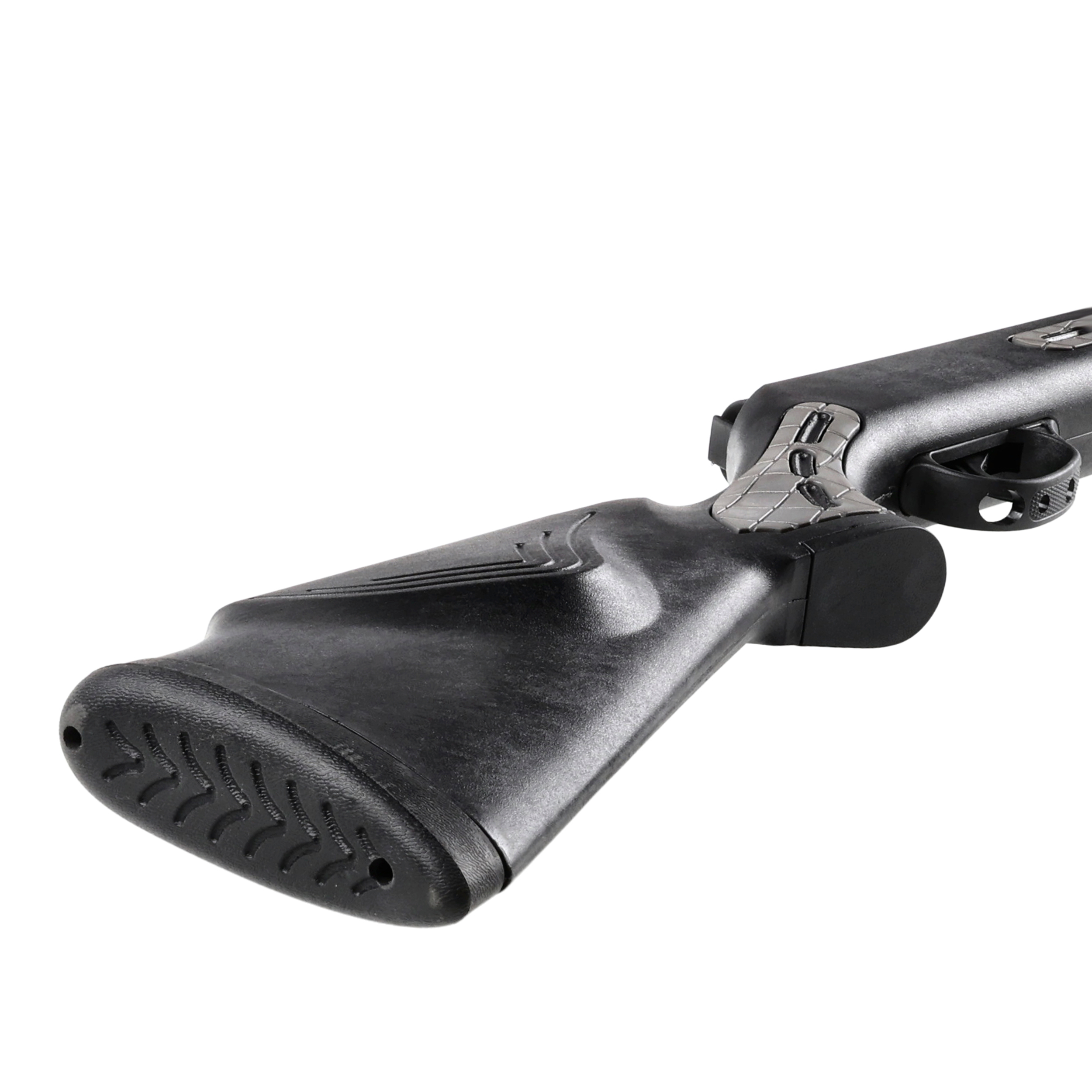 Wystrzelony śrut osiąga wysoką prędkość początkową do 250 m/s (~ 16 J), dzięki czemu z karabinka możemy także celnie strzelać na większych dystansach. Na zakończeniu lufy zamocowano polimerową atrapę tłumika, która pełni rolę podstawy muszki oraz ułatwia łamanie lufy.