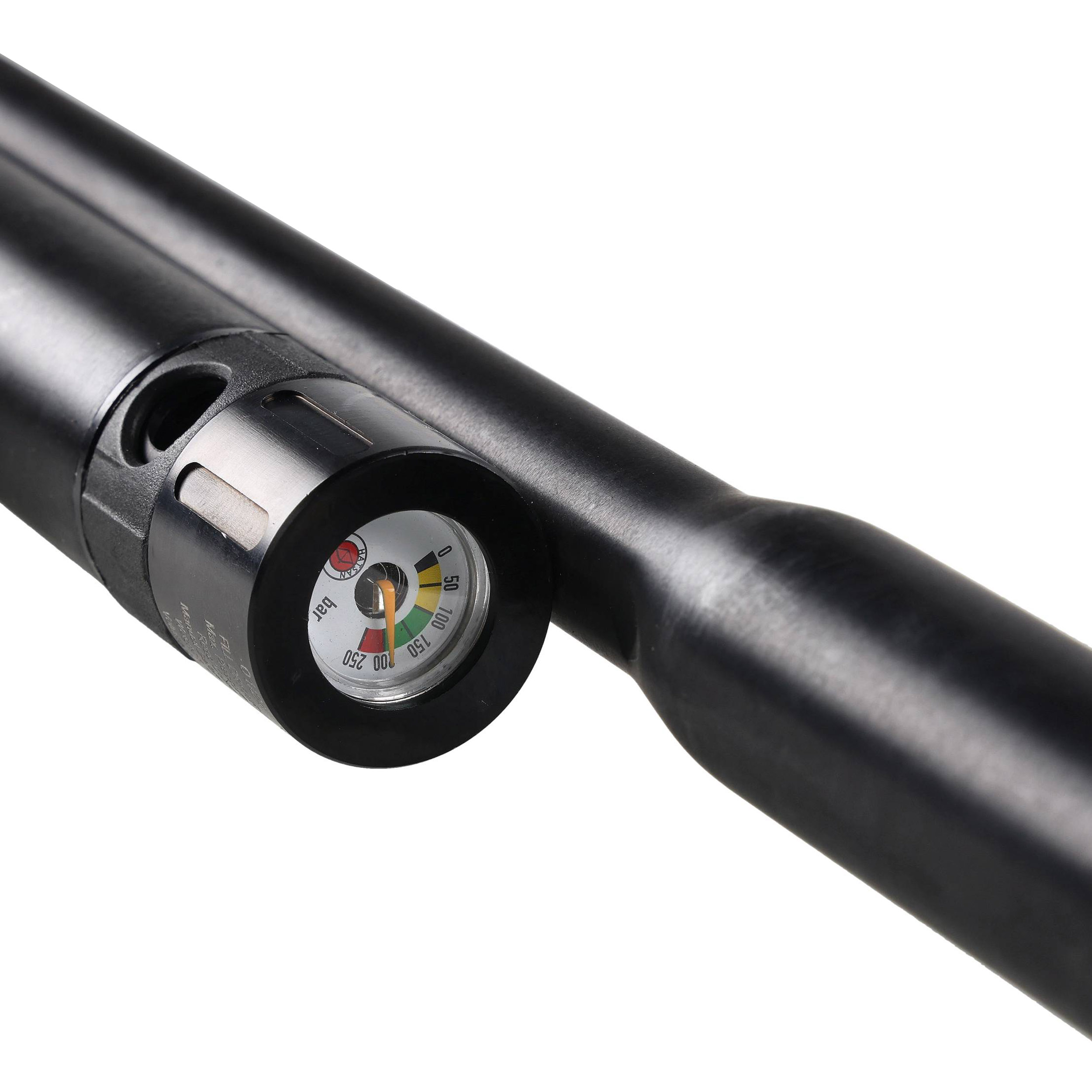 Optima by Hatsan PCP BullBoss zasilany jest za pomocą wymiennego kartusza o pojemności 230 cc, który po pełnym naładowaniu umożliwia oddanie do 150 wyrównanych strzałów. Wbudowany manometr pozwala na odczyt ciśnienia w kartuszu oraz kontrolę stanu jego napełnienia. Port ładowania powietrza jest zabezpieczony za pomocą obrotowego pierścienia. By zapobiec korodowaniu kartusza zalecamy wtłaczanie uprzednio osuszonego powietrza. W tym celu możemy stosować pompkę PCP z filtrem cząsteczkowym oraz osuszaczem, które niemal całkowicie pochłaniają wilgoć, przedłużając tym samym żywotność kartusza.