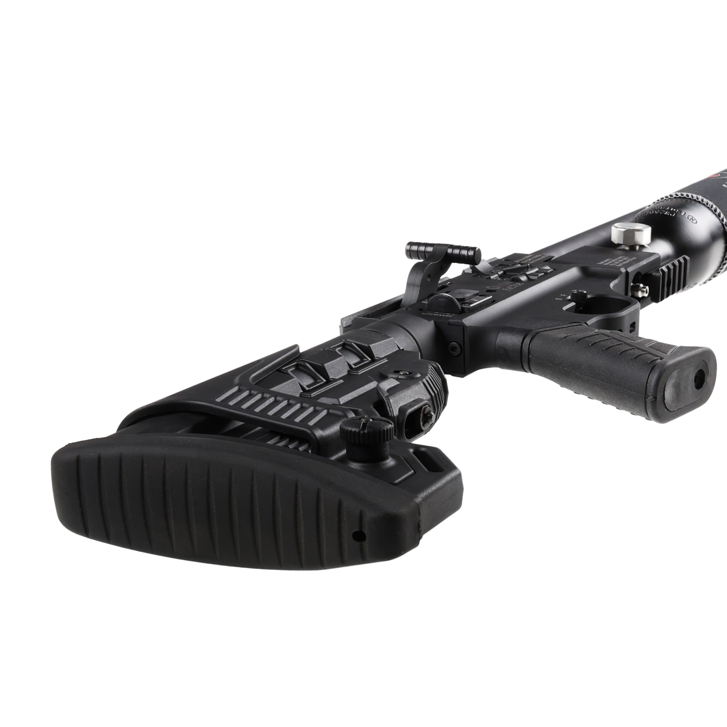 Optima by Hatsan Factor ma lekki aluminiowy korpus oraz szereg rozwiązań konstrukcyjnych zapożyczonych z amerykańskiego karabinka szturmowego AR15 m.in. profilowany chwyt pistoletowy, teleskopową kolbę z regulowaną baką policzkową oraz grzbietową szynę 11/22 mm do montaży optyki. Rozsuwaną kolbę można błyskawicznie dostosować do budowy i preferencji strzelca dzięki, a dzięki regulowanej bace policzkowej jesteśmy w stanie idealnie dopasować nasze złożenie do strzału. Krótka szyna na dole osady idealnie sprawdzi się jako do montażu bipodu, który zwiększa precyzję strzelania na dużym dystansie.