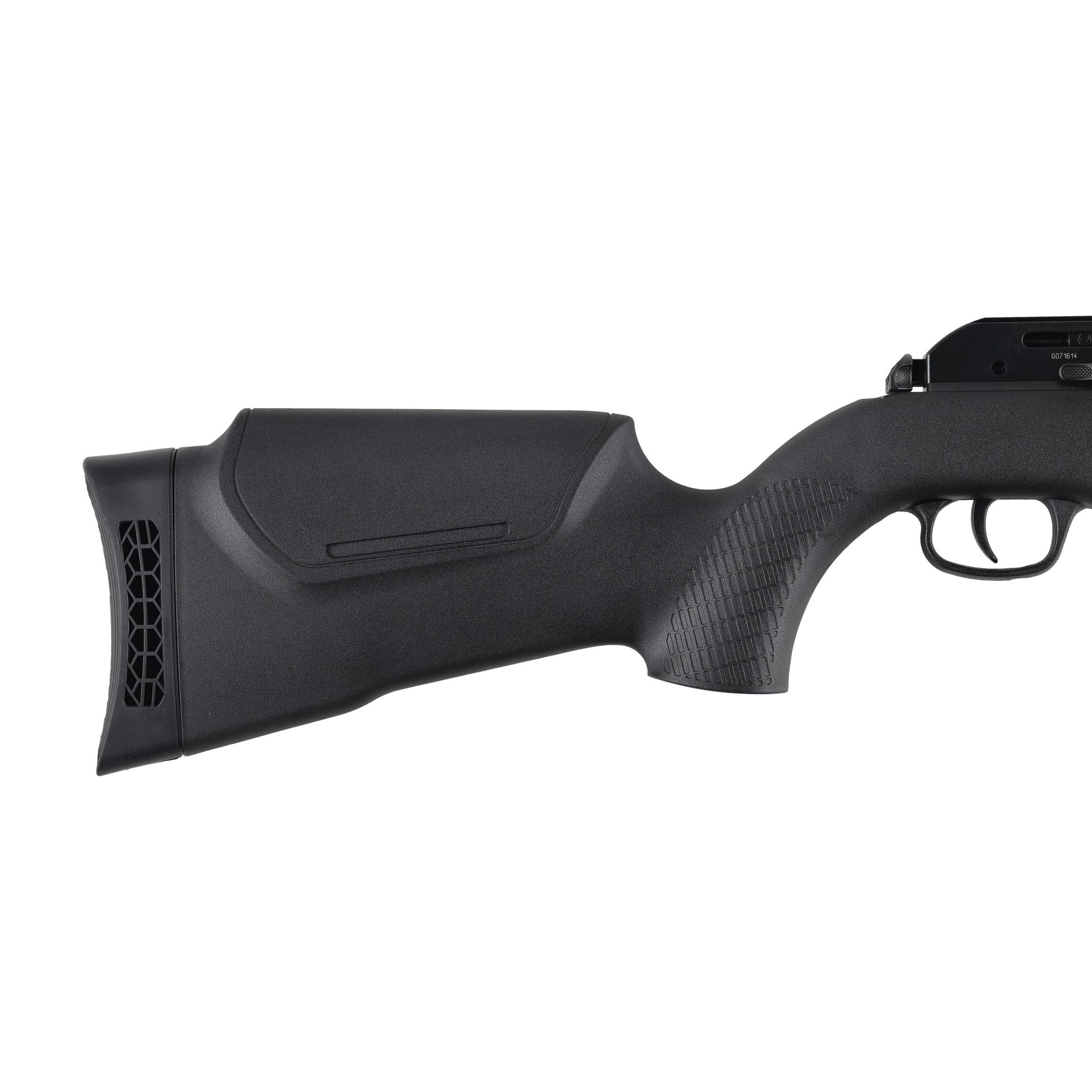 Osadę karabinka wykonano z solidnego polimeru, który dodatkowo został wzmocniony włóknem szklanym. Łoże oraz chwyt pistoletowy mają estetyczne ryflowanie poprawiające przyczepność, oraz komfort użytkowania.