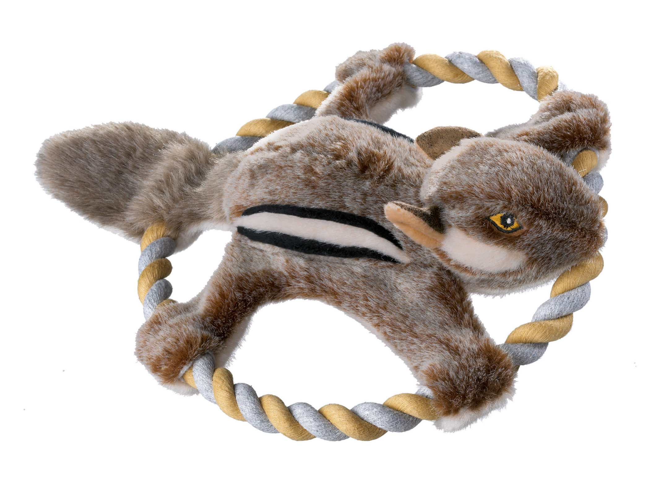 Zabawkę o średnicy 32 cm wykonano z solidnego i miękkiego poliestru i pluszu, w szaro-rudej kolorystyce wiewiórki. Podczas treningu zabawkę można wypełnić psimi smakołykami, co zwiększa efektywność i motywację zwierzaka.
