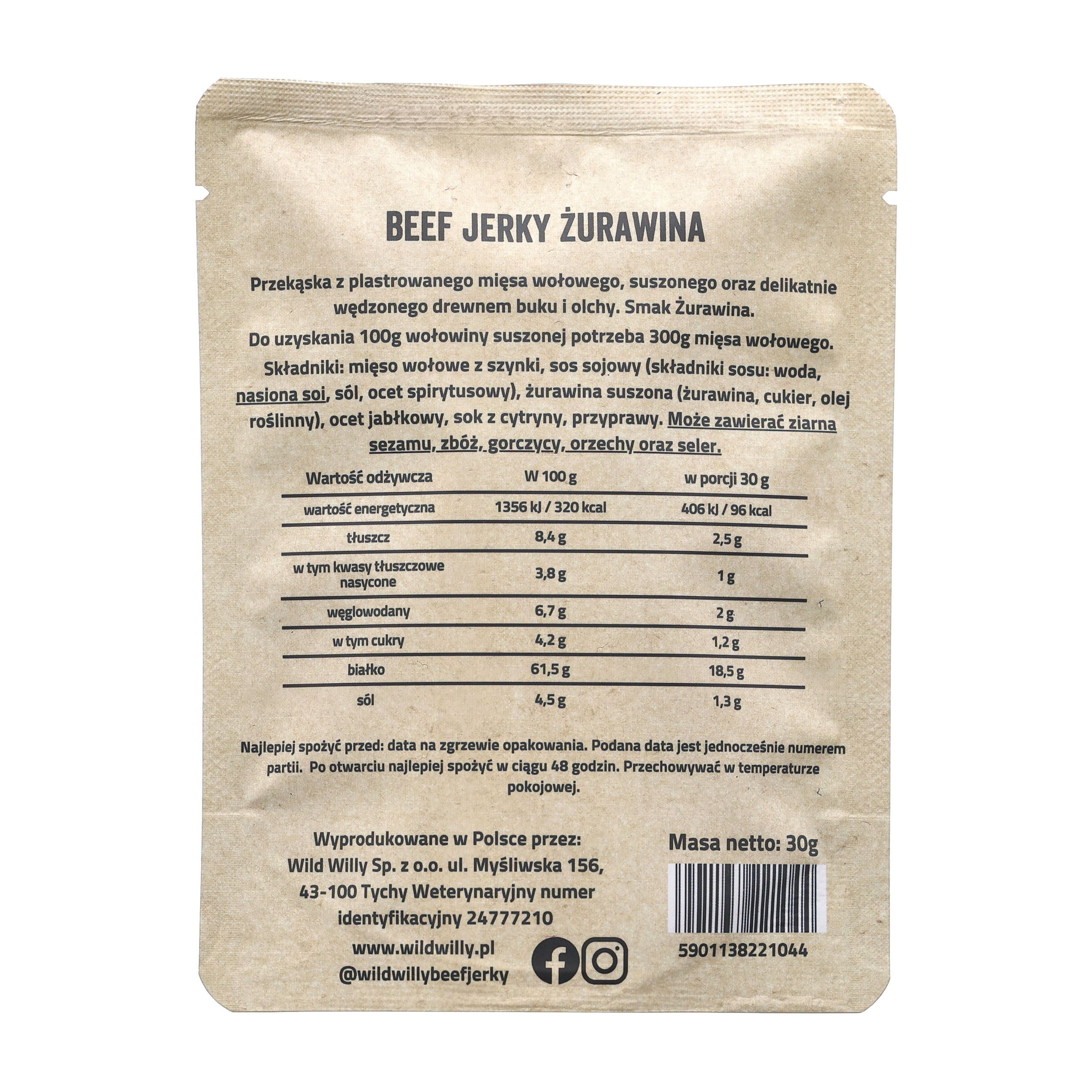 Składy wołowiny Wild Willy Beef Jerky żurawina: