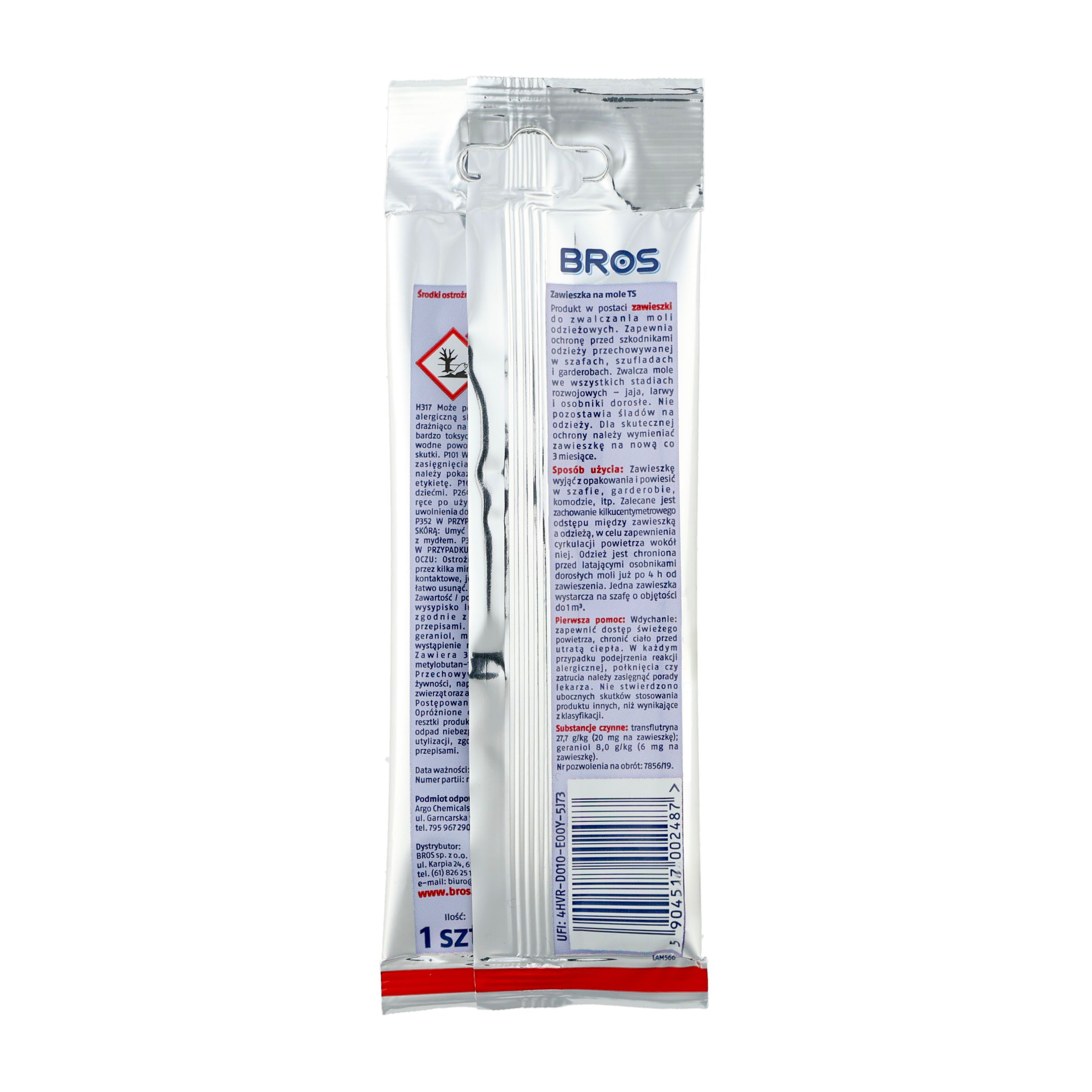 Lawenda to znany i ceniony od lat domowy środek odstraszający mole przed zagoszczeniem w naszej szafie. Korzystając z gotowej zawieszki lawendowej na mole Bros, możemy skutecznie chronić odzież przed szkodliwą aktywności moli. Jej aplikacja jest banalnie prosta, wystarczy powiesić ją w miejscu aktywności moli np. w garderobie lub szufladzie i gotowe! Substancja aktywna działa nawet do 6 miesięcy i zapewnia delikatny świeży zapach, który zwalcza dorosłe osobniki, jaja i larwy.