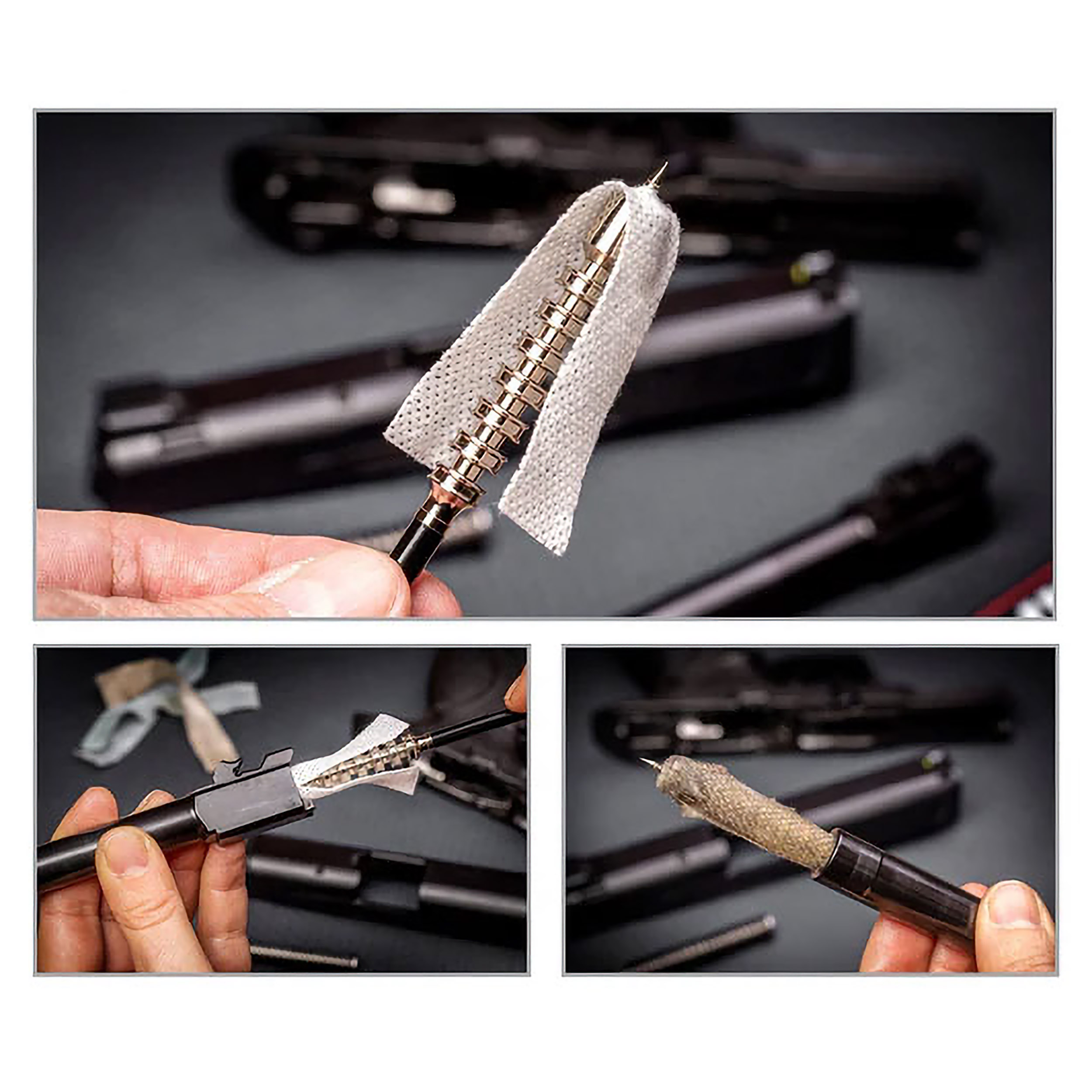 Użytkownik w zestawie do czyszczenia Real Avid otrzymuje szczotkę do czyszczenia lufy i materiałowe przecieraki z uchwytem. Dzięki temu zestawowi każda czynność związana z czyszczeniem lufy broni staje się prosta, szybka i efektywna.