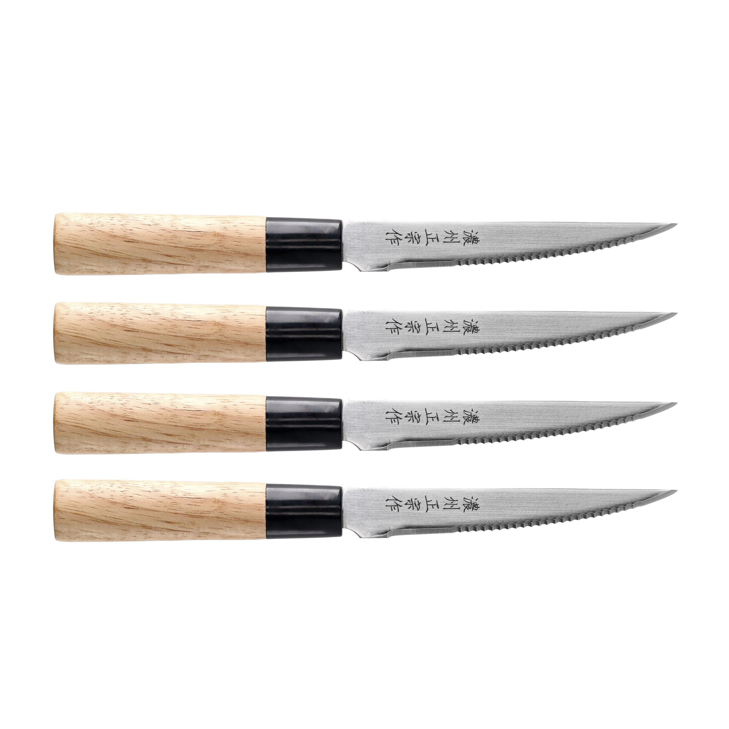 Dzięki doskonałemu stosunkowi jakości do ceny noże Satake Megumi Classic stanowią dobre wprowadzenie w świat tradycyjnych noży japońskich. Głownie noży wykonano z wysokowęglowej stali nierdzewnej 420J2 hartowanej do twardości ok. 56 HRC. Ten popularny gatunek stali cechuje się wysoką odpornością na korozję i co ważne dla początkujących mistrzów kuchni noże ze stali 420J2 łatwo i szybko się ostrzy nawet za pomocą klasycznej stalki. Smukła głownia z ząbkowaną krawędzią tnącą z łatwości radzi sobie z cięciem mięsa, nie szarpiąc przy tym jego włókien. Nóż Satake Megumi do steków może być także wykorzystywany do codziennej obróbki mięsa i krojenia wędlin.