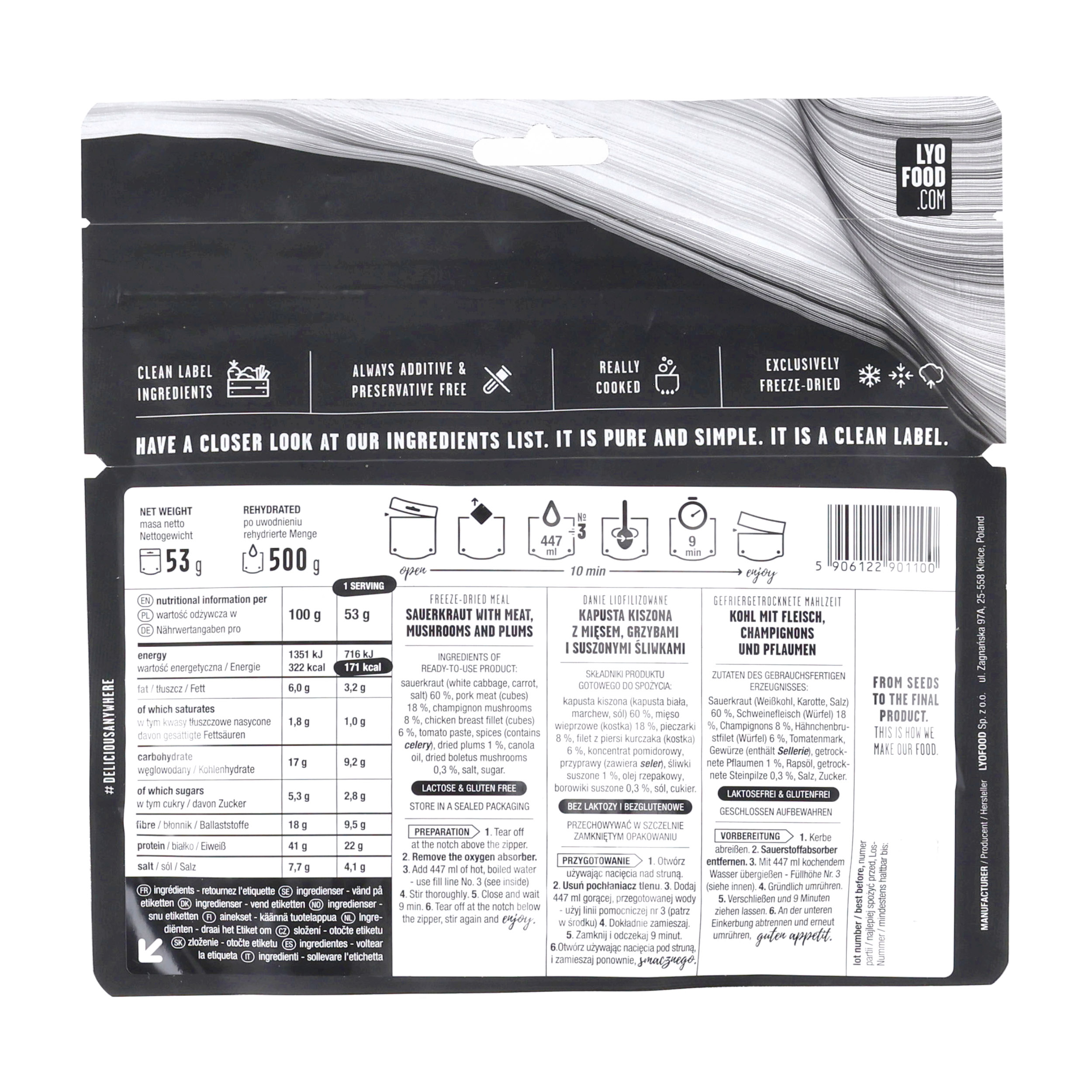LYOFOOD Bigos (500 g) to liofilizowana wersja tradycyjnego dania, które od pokoleń gości na polskich stołach, nieustannie zachwycając wyrazistym smakiem i aromatem.